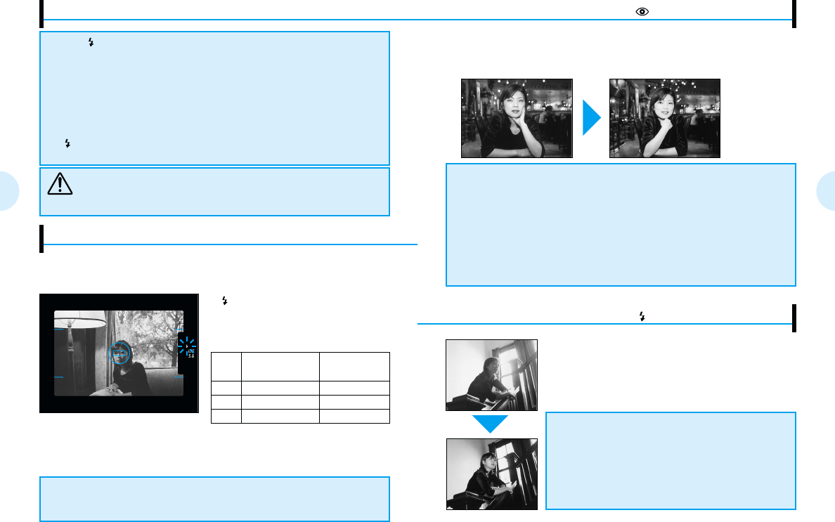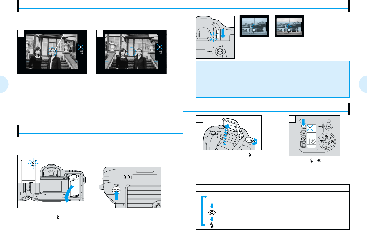 Reduction Flash (same as auto otherwise), Fill-In (forced activation)