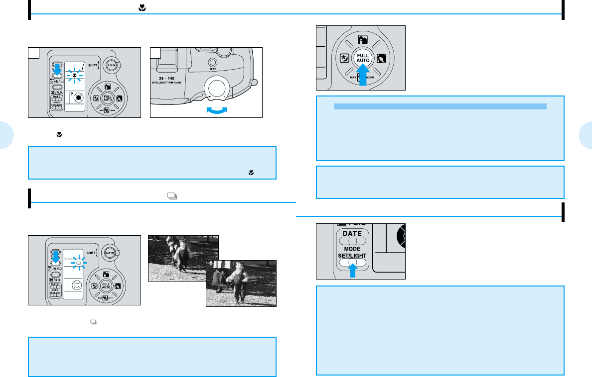 telephoto with ISO 100 color negative film; 0.6 m ~ 7.4 m (2.0 ~