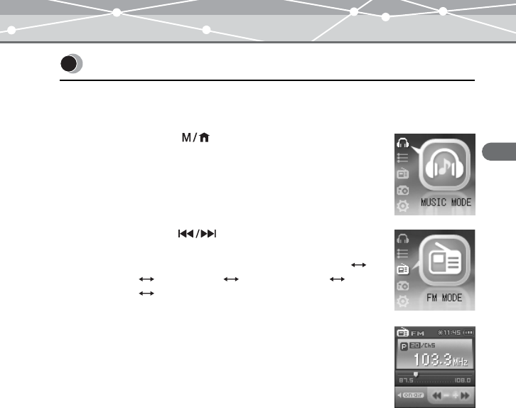 • You can listen to and record FM radio programs.