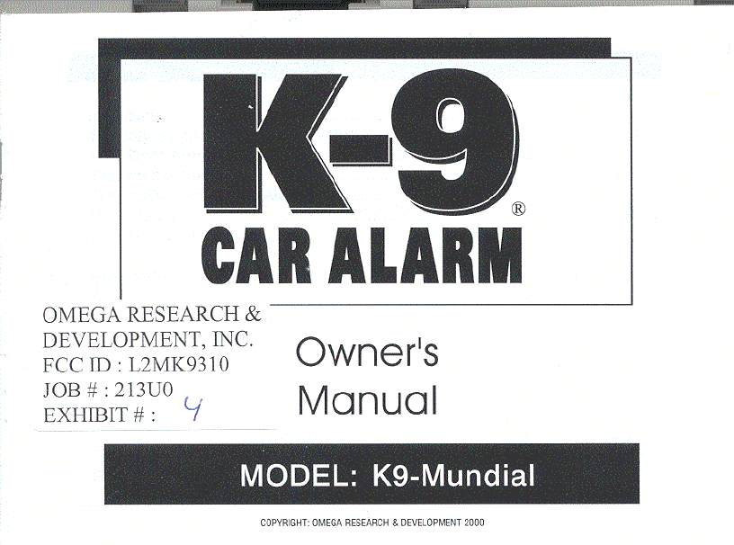 Omega Research and Development K9310 Security Device Transmitter User Manual users manual
