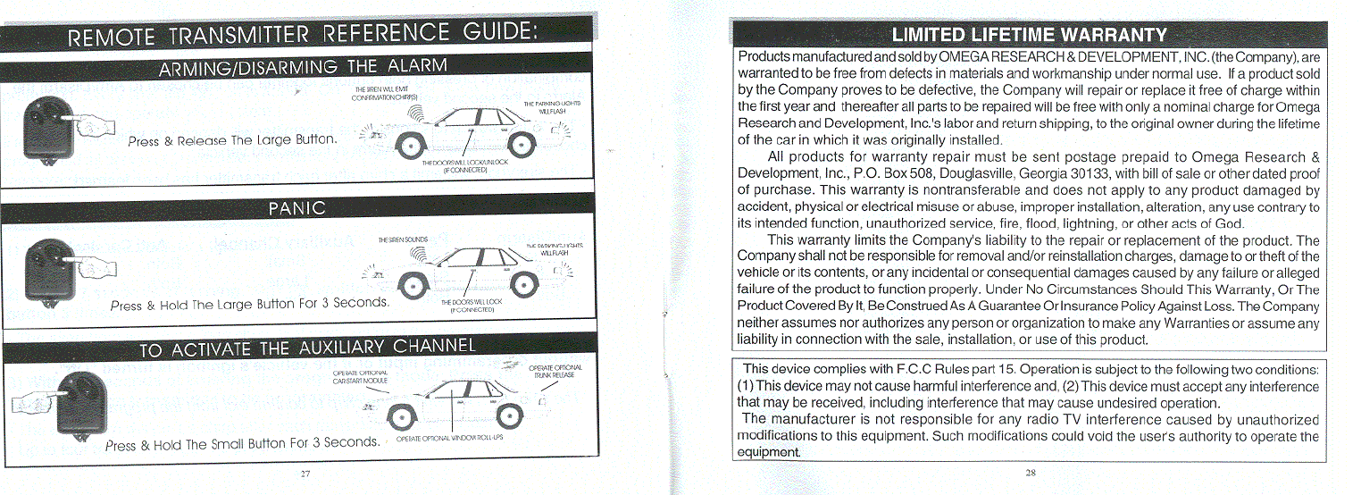 Omega Research and Development Inc Security Device Transmitter users manual