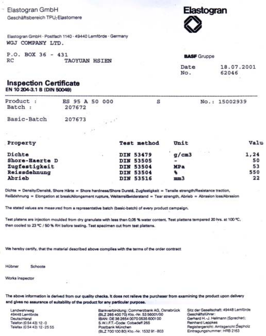 Tensile Strength 2500 PSI MIN.( 1.76 Kg / m㎡)