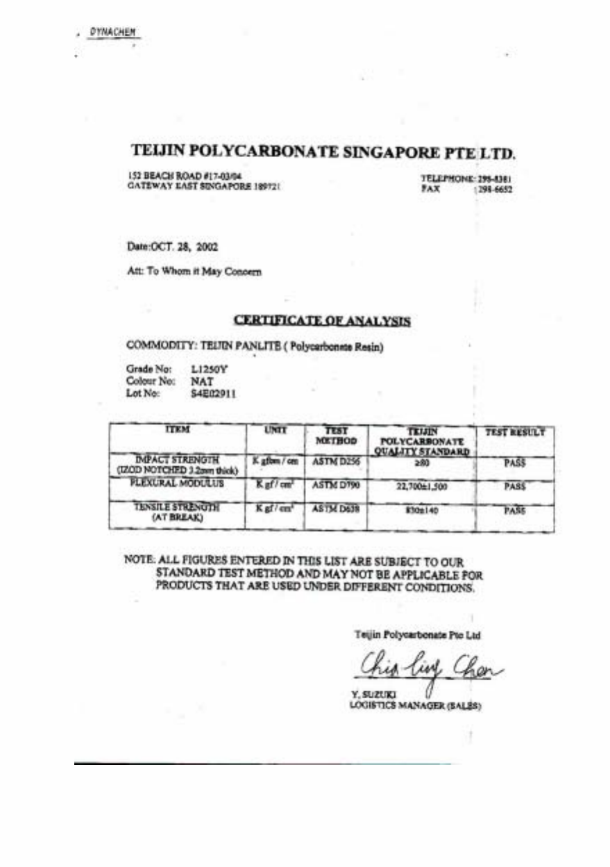 MAKER : C.Y.CHEN CONFIRM : S.N.WONG APPROVAL : W.J.WANG