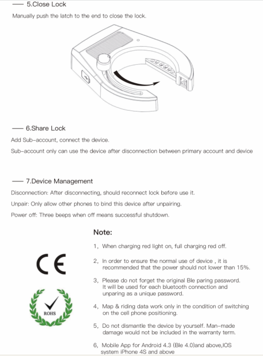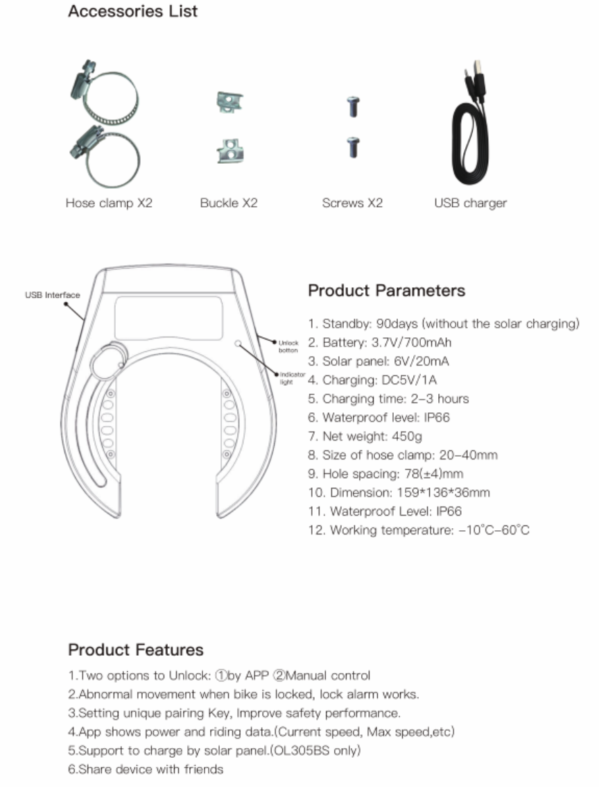 Omni Intelligent Technology OL305B Smart Bluetooth Bicycle Lock User Manual