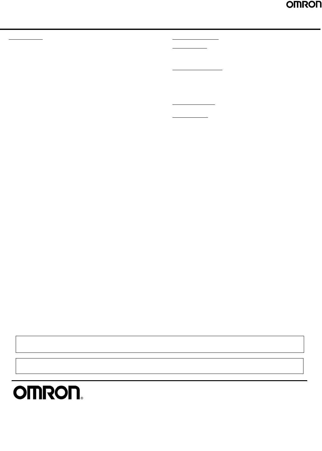 Complete “Terms and Conditions of Sale” for product purchase and use are on Omron’s website