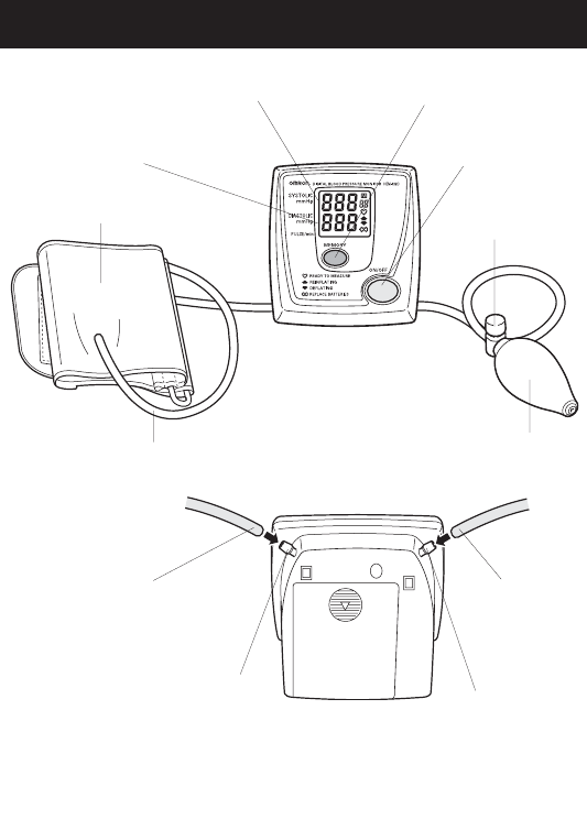 Accessories: Arm cuff, Inflation bulb, Instruction manual