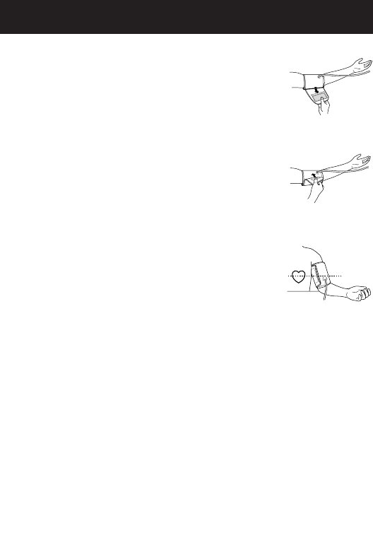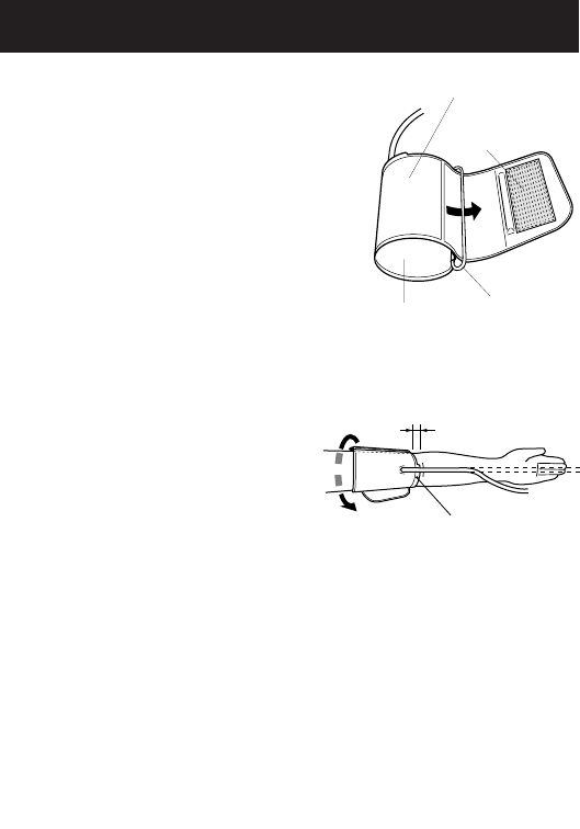 2. Put your left arm through the cuff loop. The bottom of the cuff
