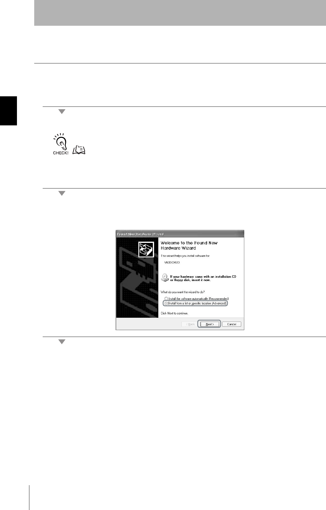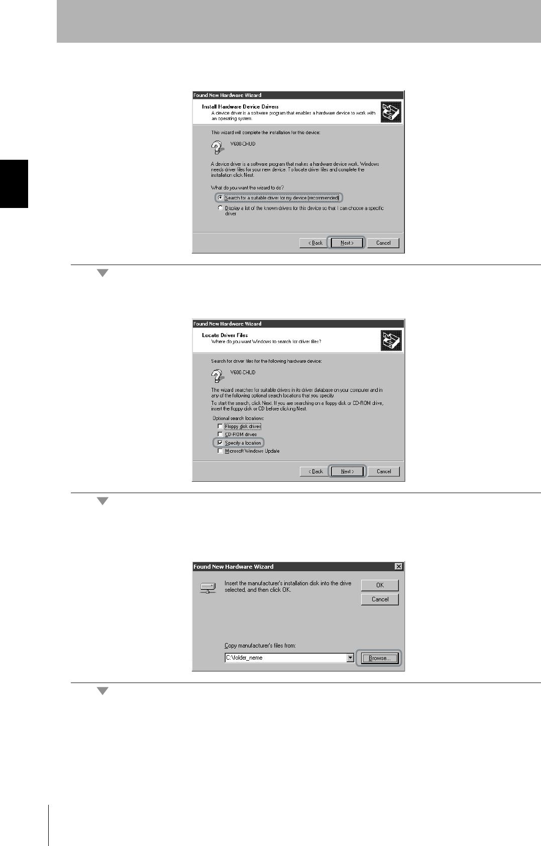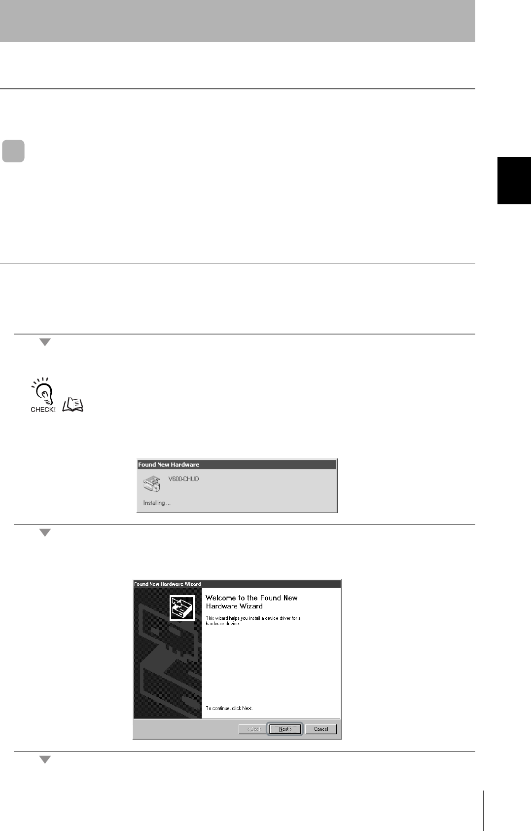 The V600-CHUD supports Windows 2000 and Windows XP operating systems. Install the driver in the