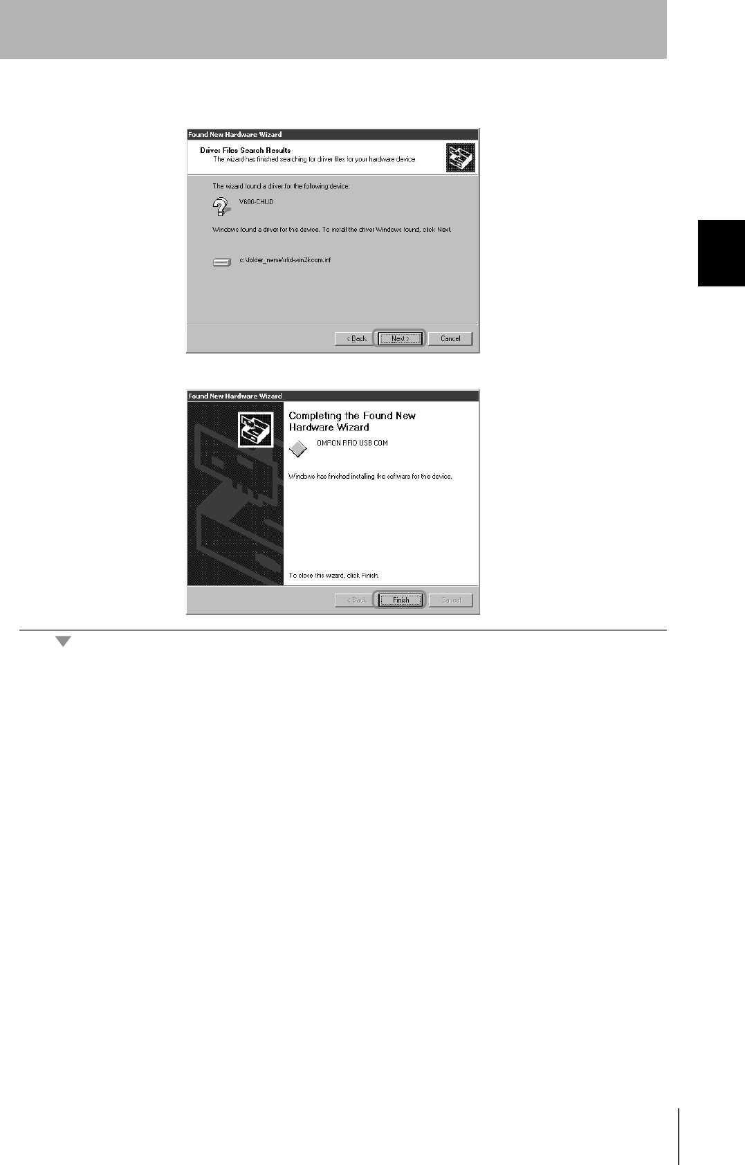 When connecting the Hand-held Reader Writer to the host device for the first time, the USB driver must be