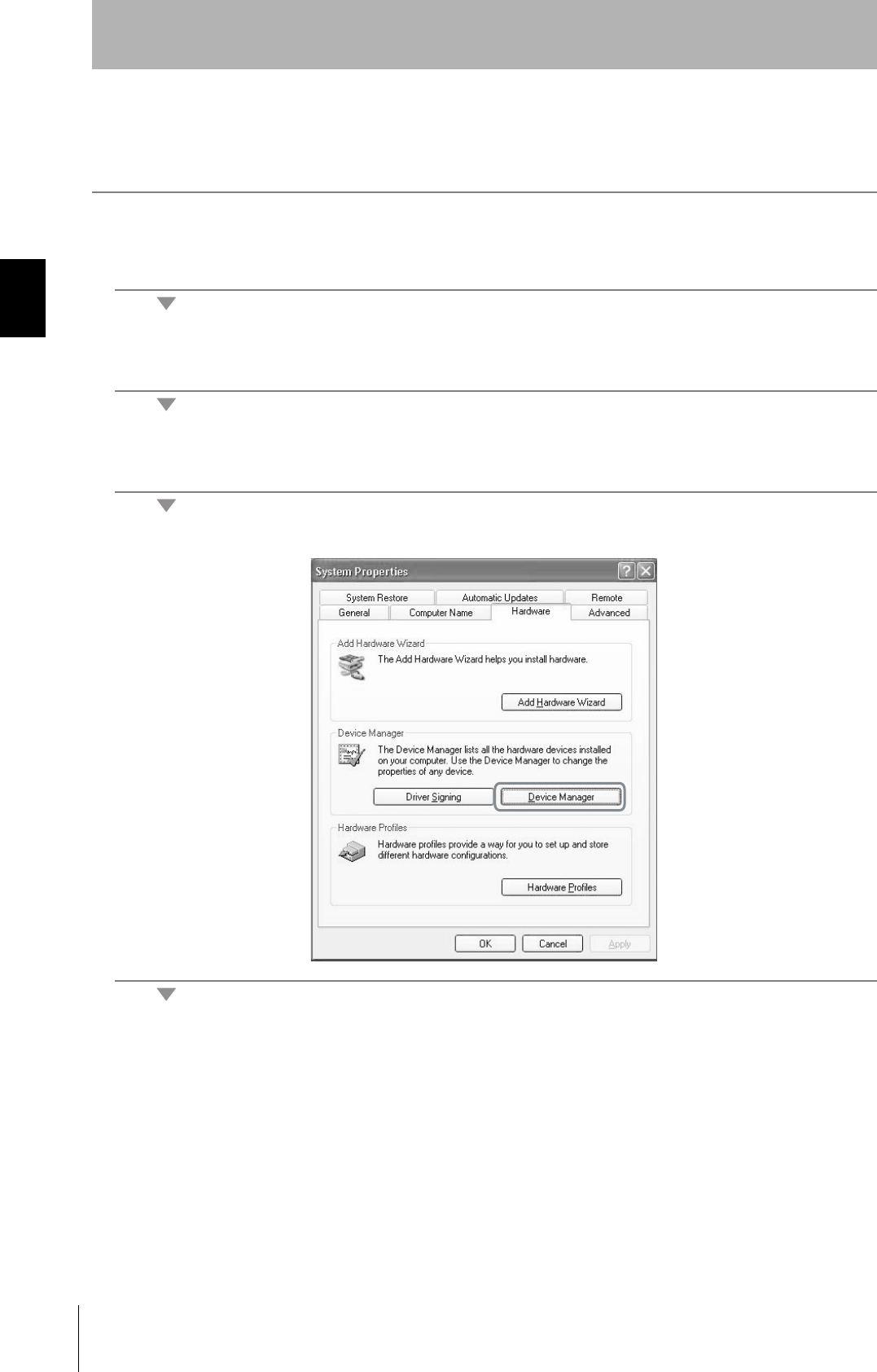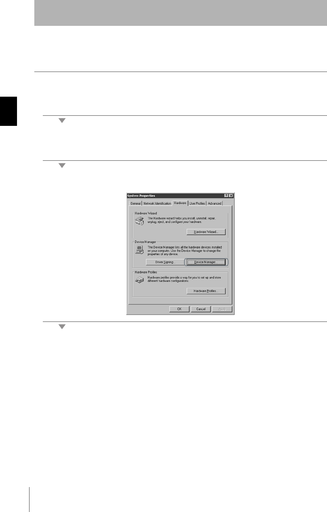 4. Click the Device Manager Button in the Hardware Tab Page.