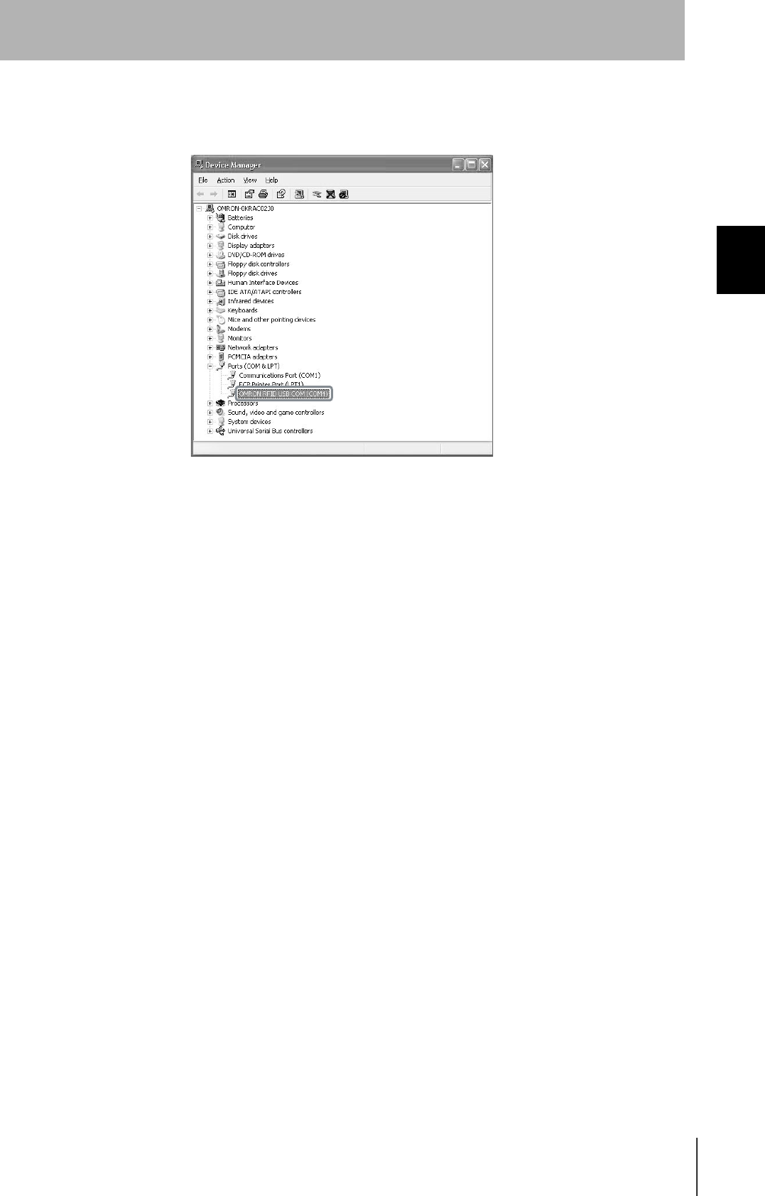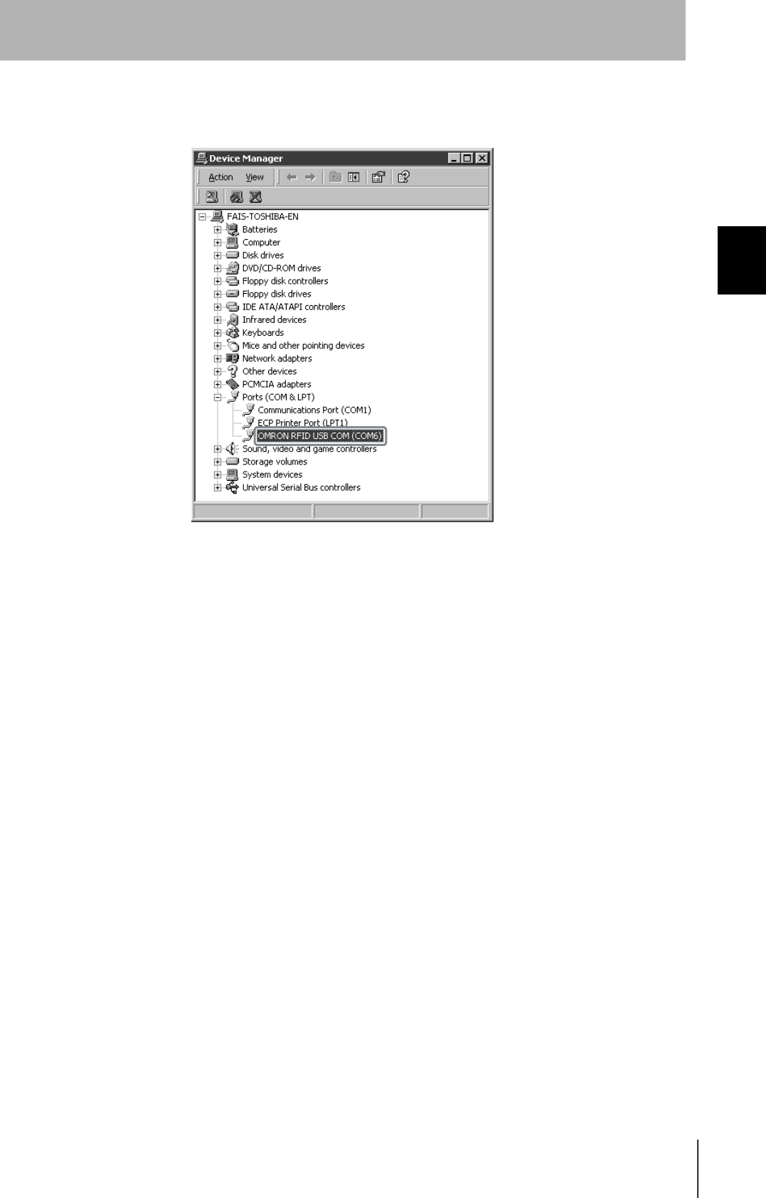 5. Select Ports (COM & LPT), and check that OMRON RFID USB COM is displayed.