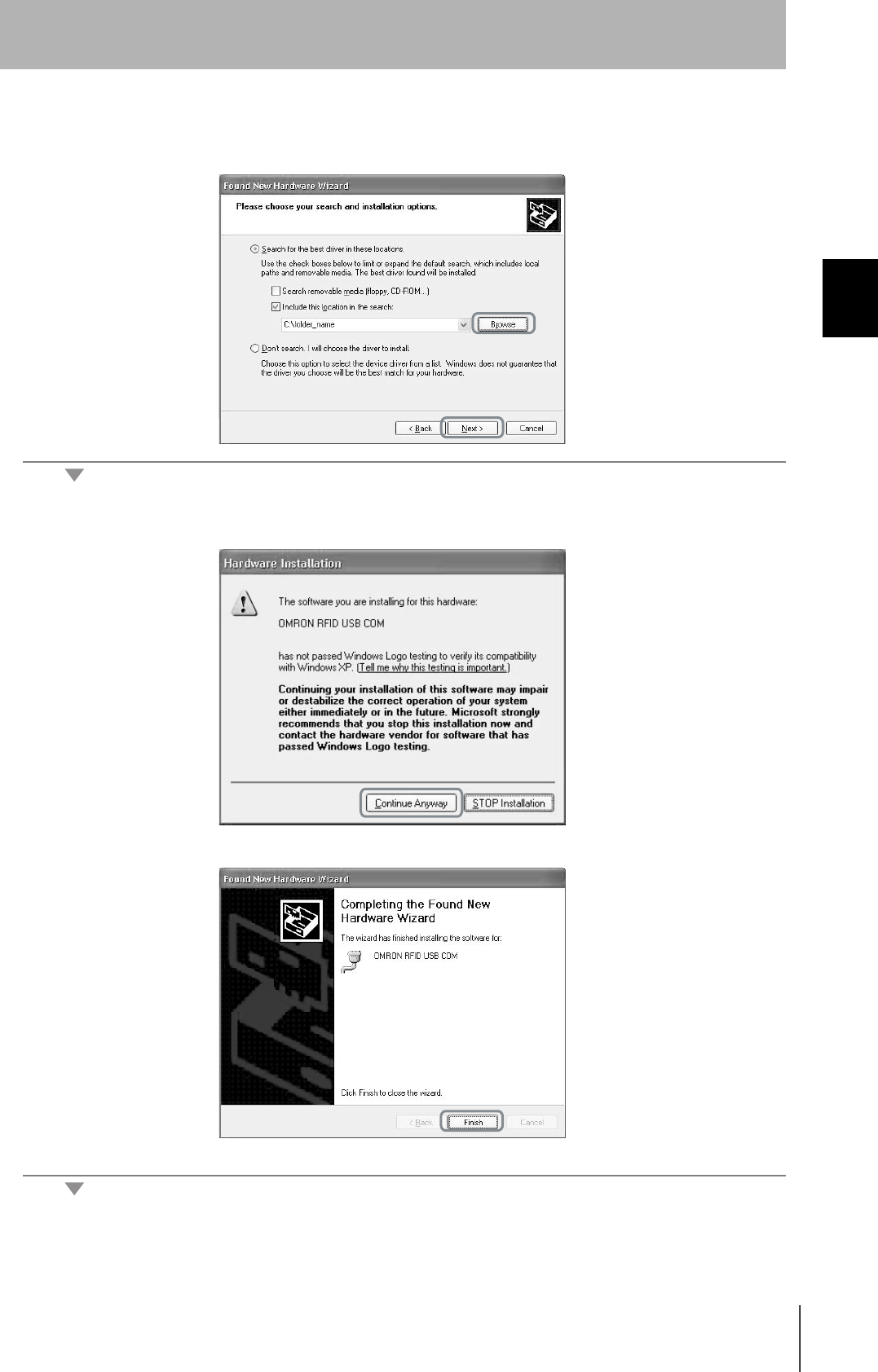 4. Click the Browse Button, and select the folder in which the downloaded file RFID-Win2kcom.inf is