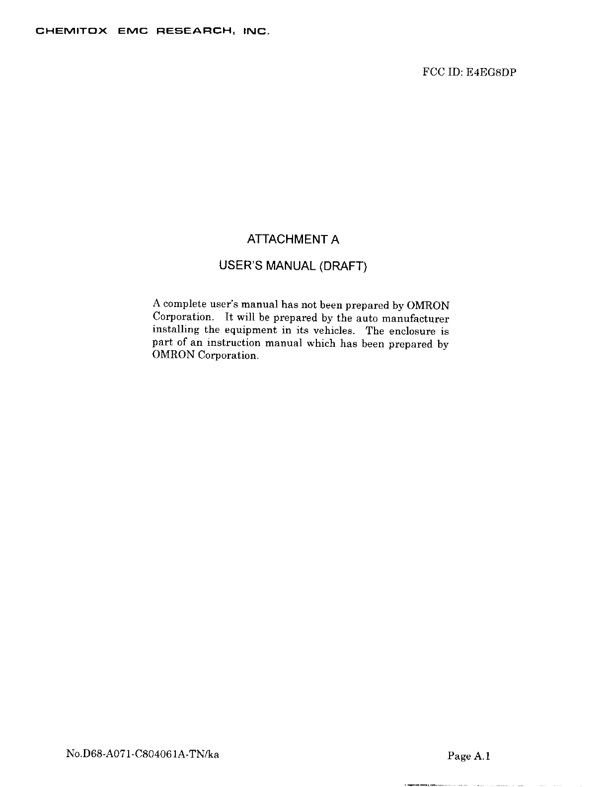 Omron G8DP Auto Security System Transmitter User Manual 52452