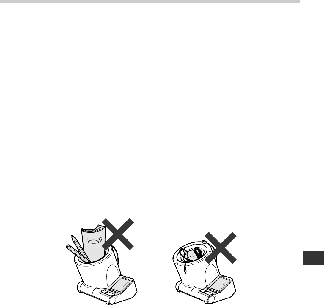 • Do not use mobile (cellular) telephones and other devices, which generate strong