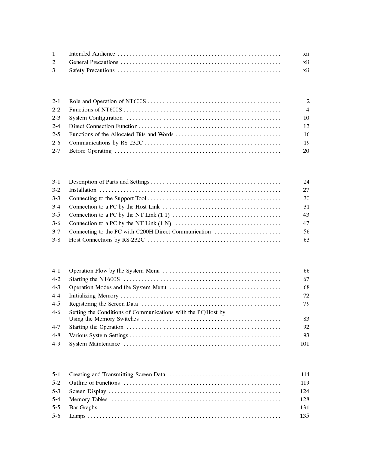 NT600S Functions 113...................................