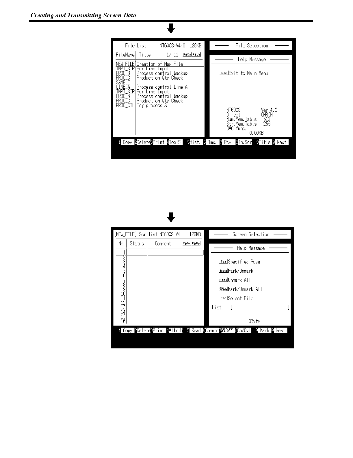 describes transferring screens online to and from the host computer.