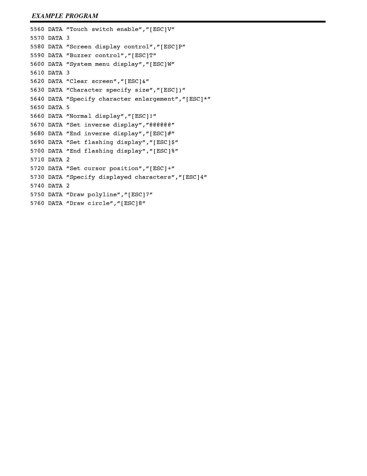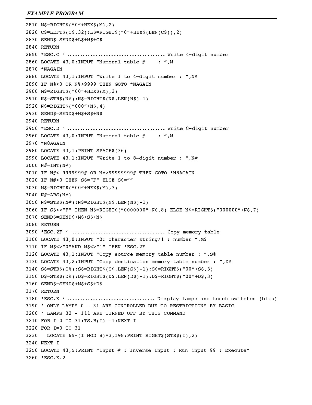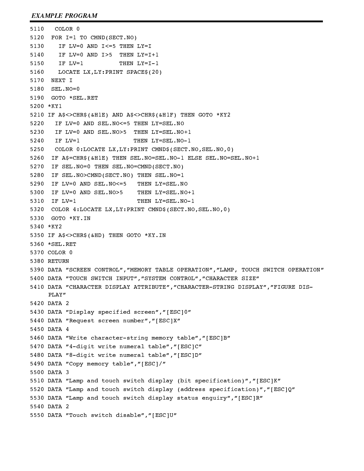 Included is automatic transfer of data from the host computer via character string and numeral tables.