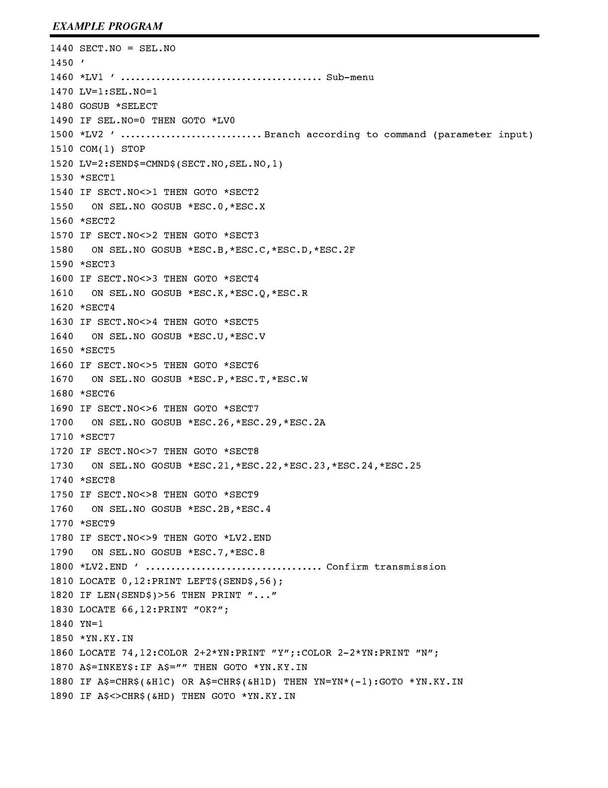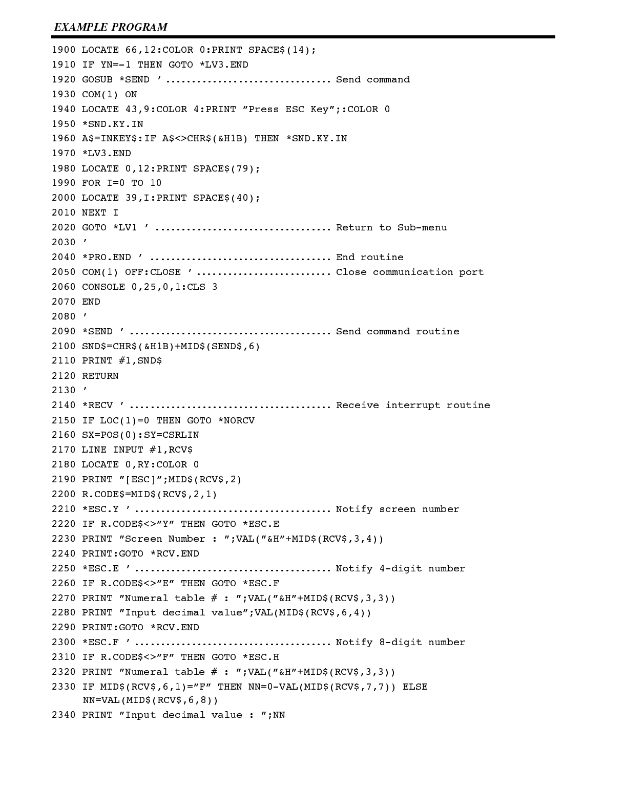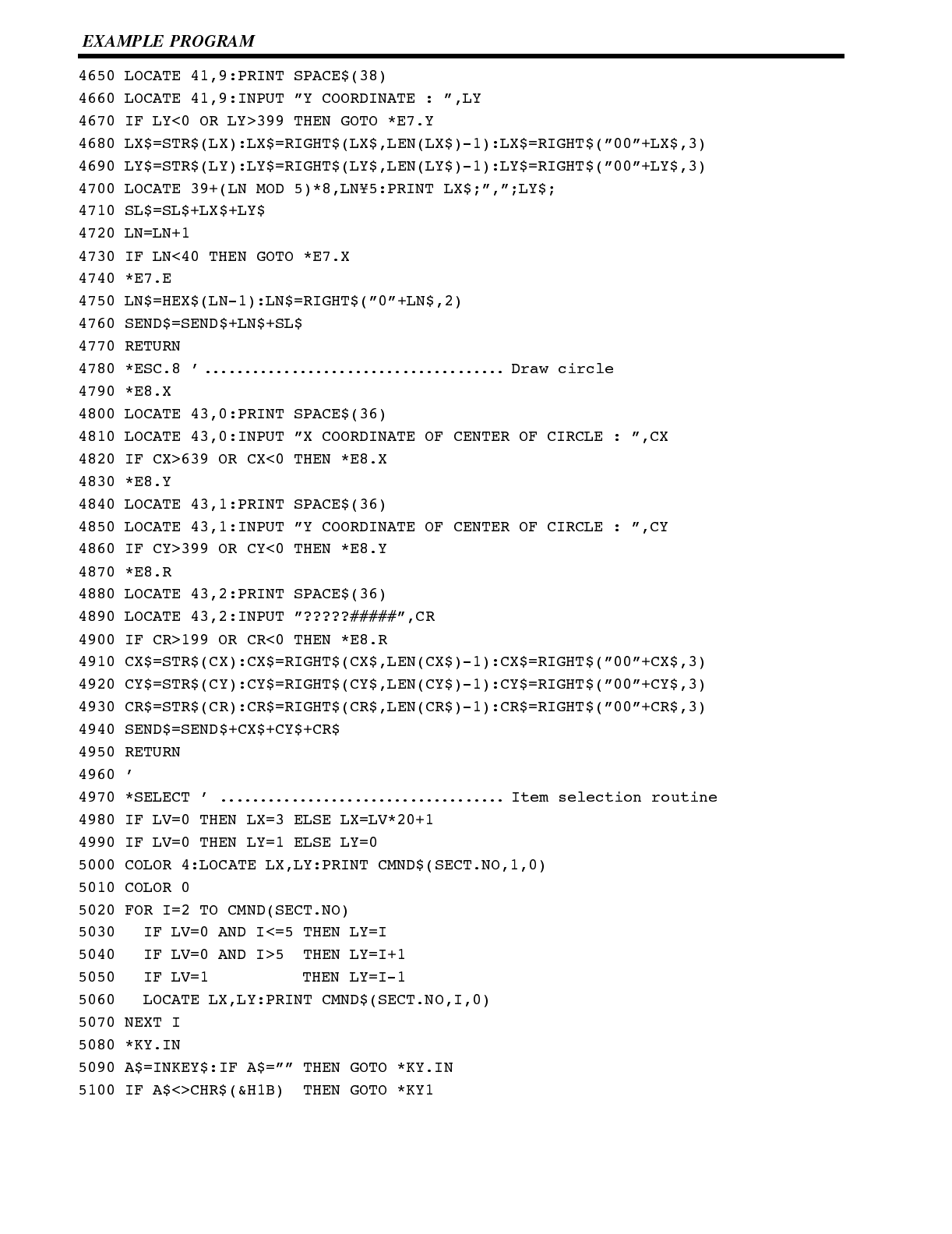 Included is automatic transfer of data from the host computer via character string and numeral tables.