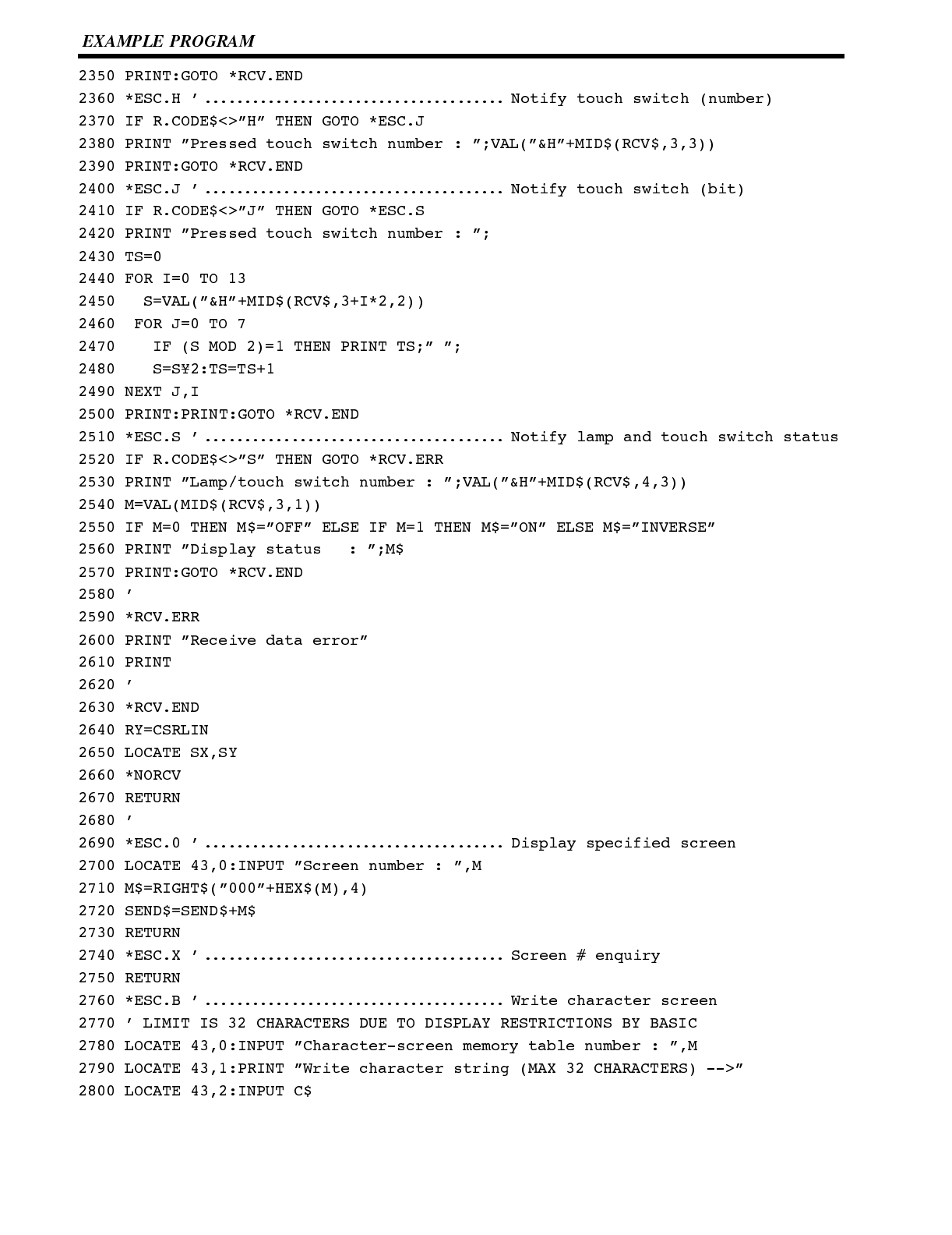 Touch switch bit output 220.....................