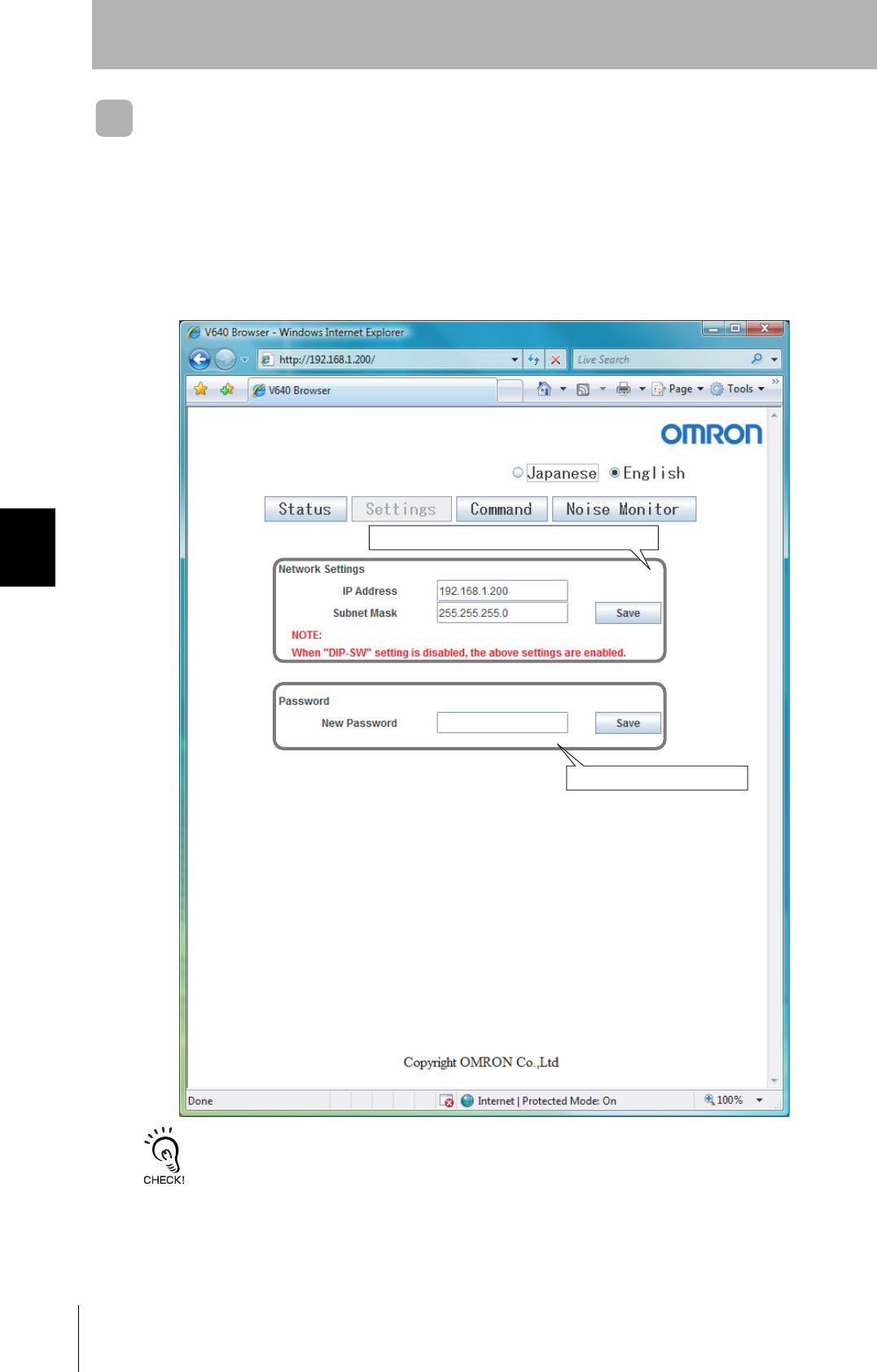 Network Settings(ROM) If the Amplifier Unit is set to use the IP address that is set in ROM, this