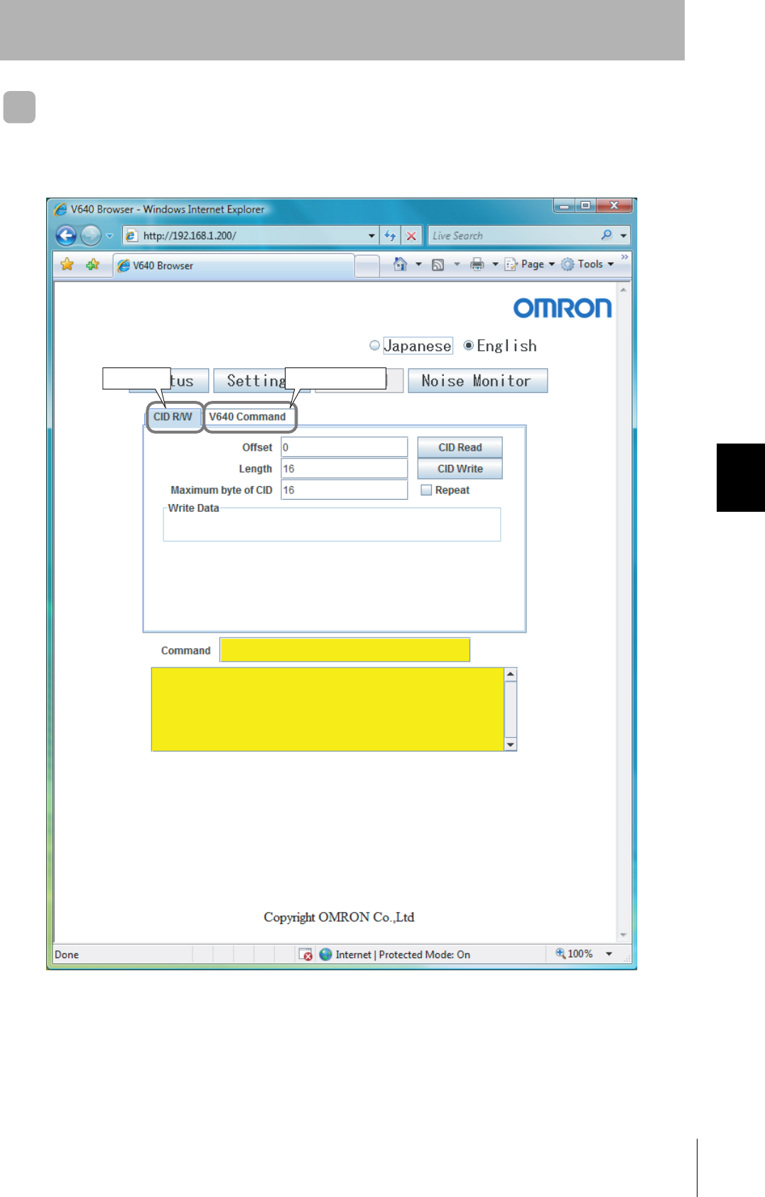 The CID R/W Tab Page allows you to read or write ID Tag data by specifying the offset, length, and