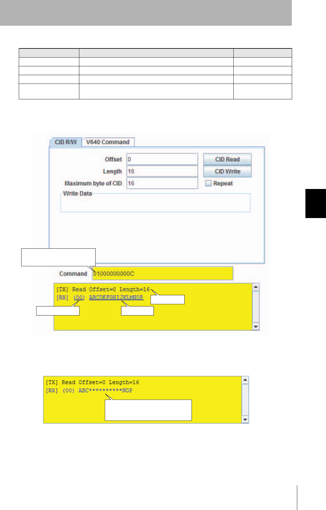 Only visible ASCII characters can be used to read and write data on the CID R/W Tab Page. If charac-