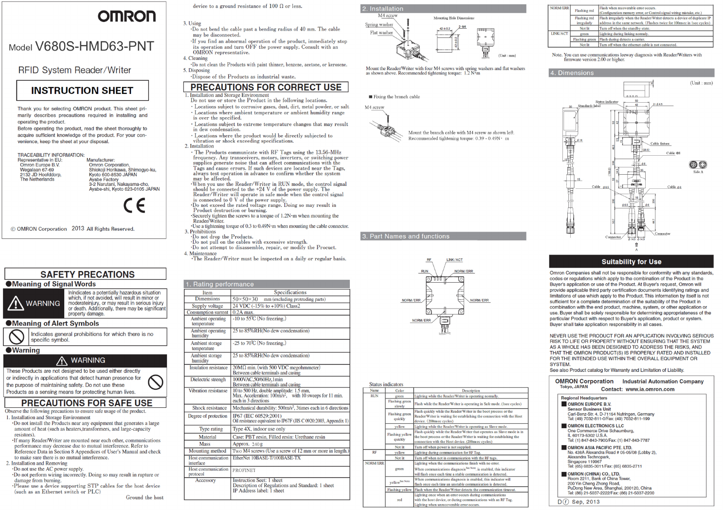 Omron V680S63 Radio Frequency Identification System (RFID System) User Manual HMD63 PNT 201i 211p 201j