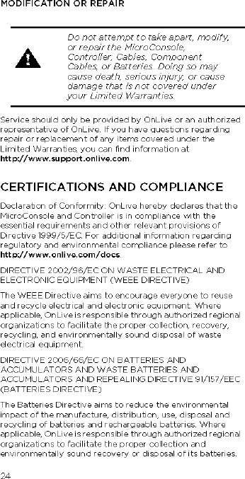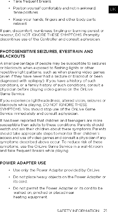 OnLive 510-2028-0001 OnLive USB Adapter User Manual