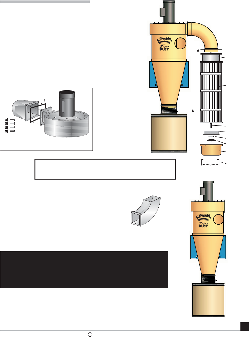 2. Install Ductwork completely before operating collector: