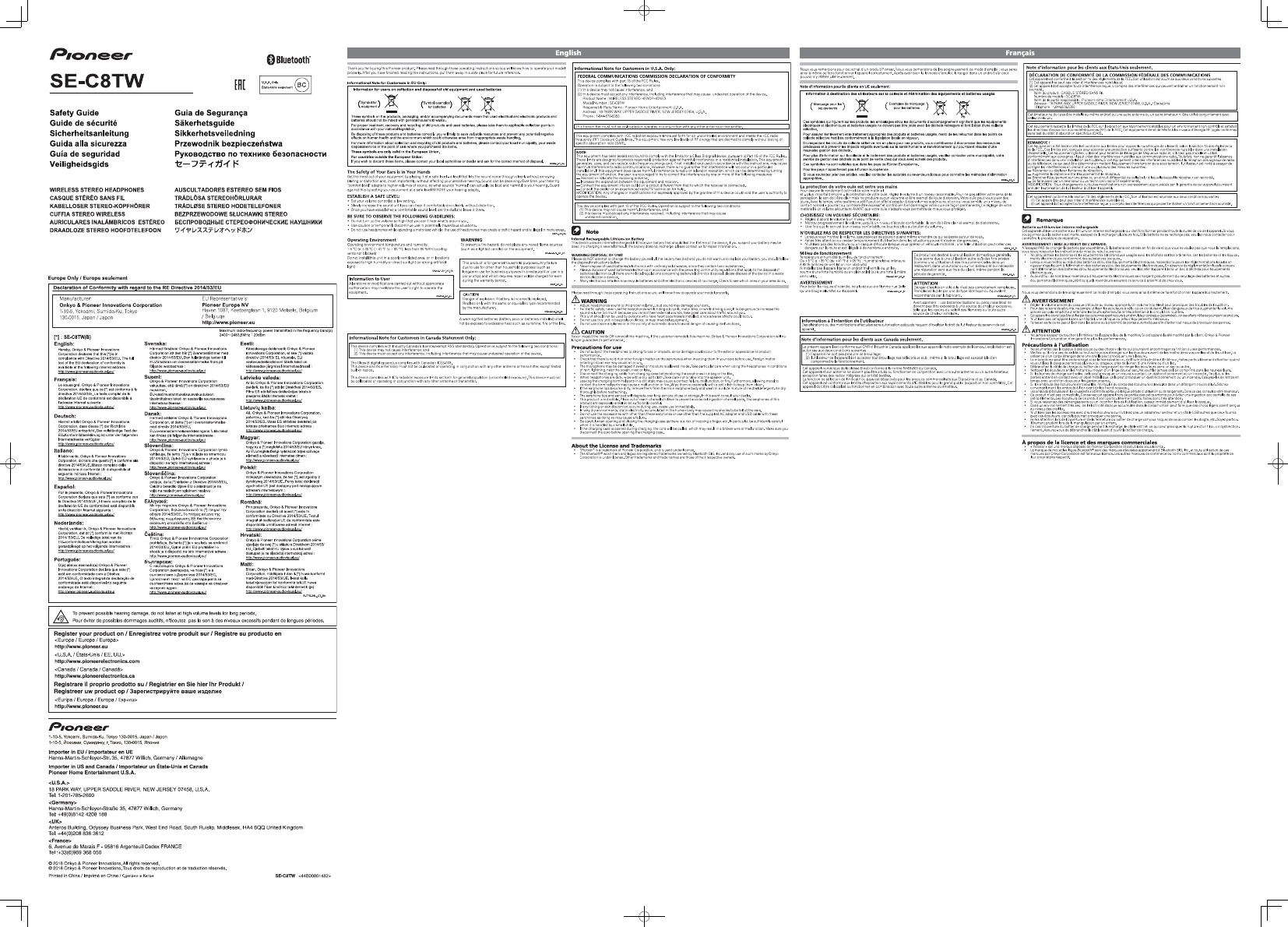 Onkyo and Pioneer Innovations C8TW Wireless Stereo Headphones User Manual C8TW SafetyGuide 44B00001482 front