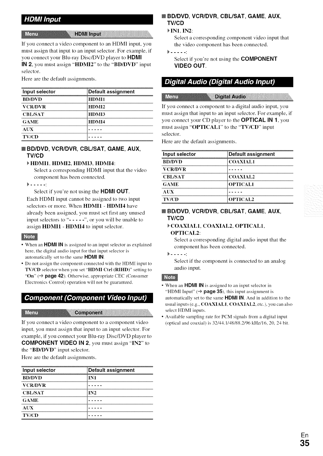 Composite BD/DVD, VCR/DVR, CBL/SAT, GAME,