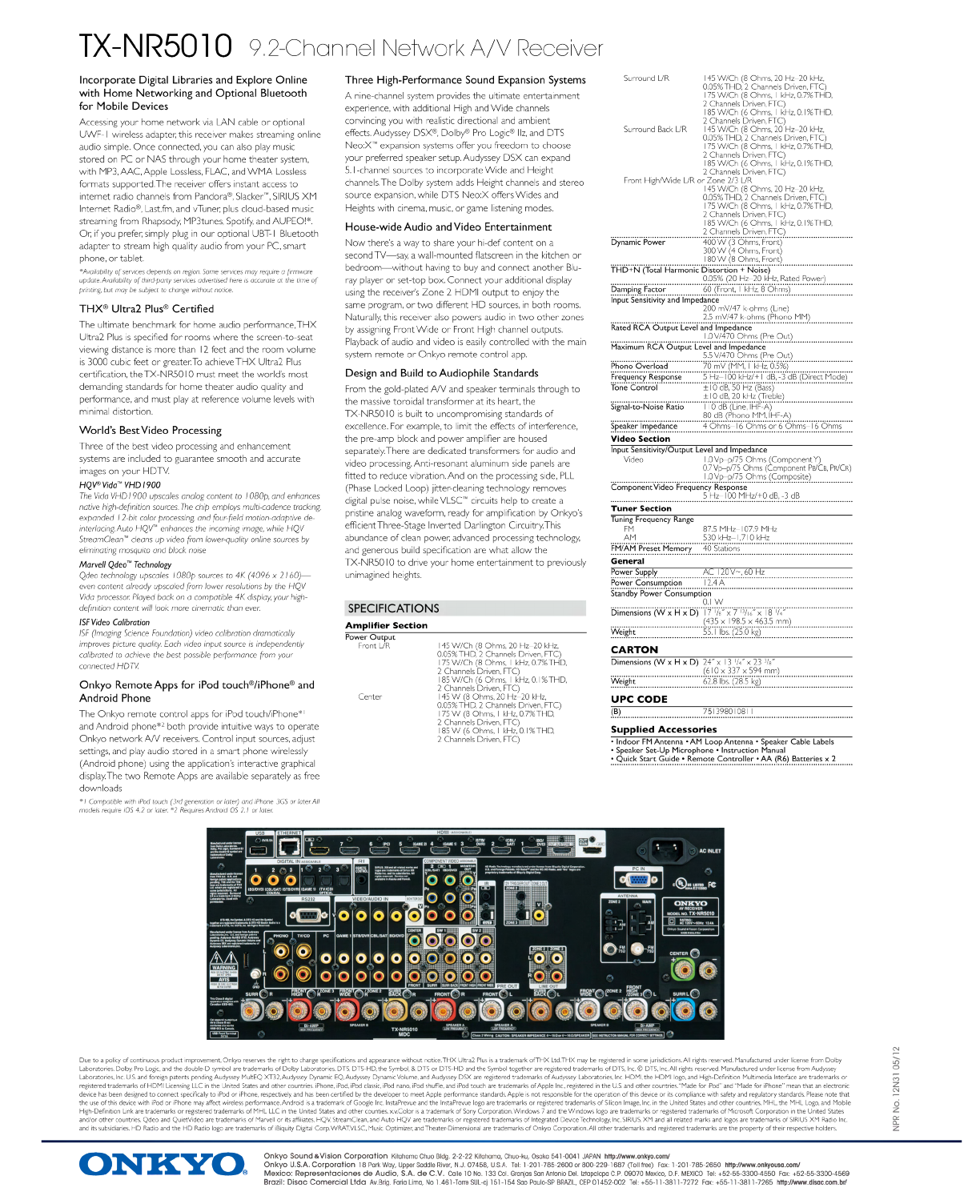 Onkyo Tx Nr5010 Product Sheet