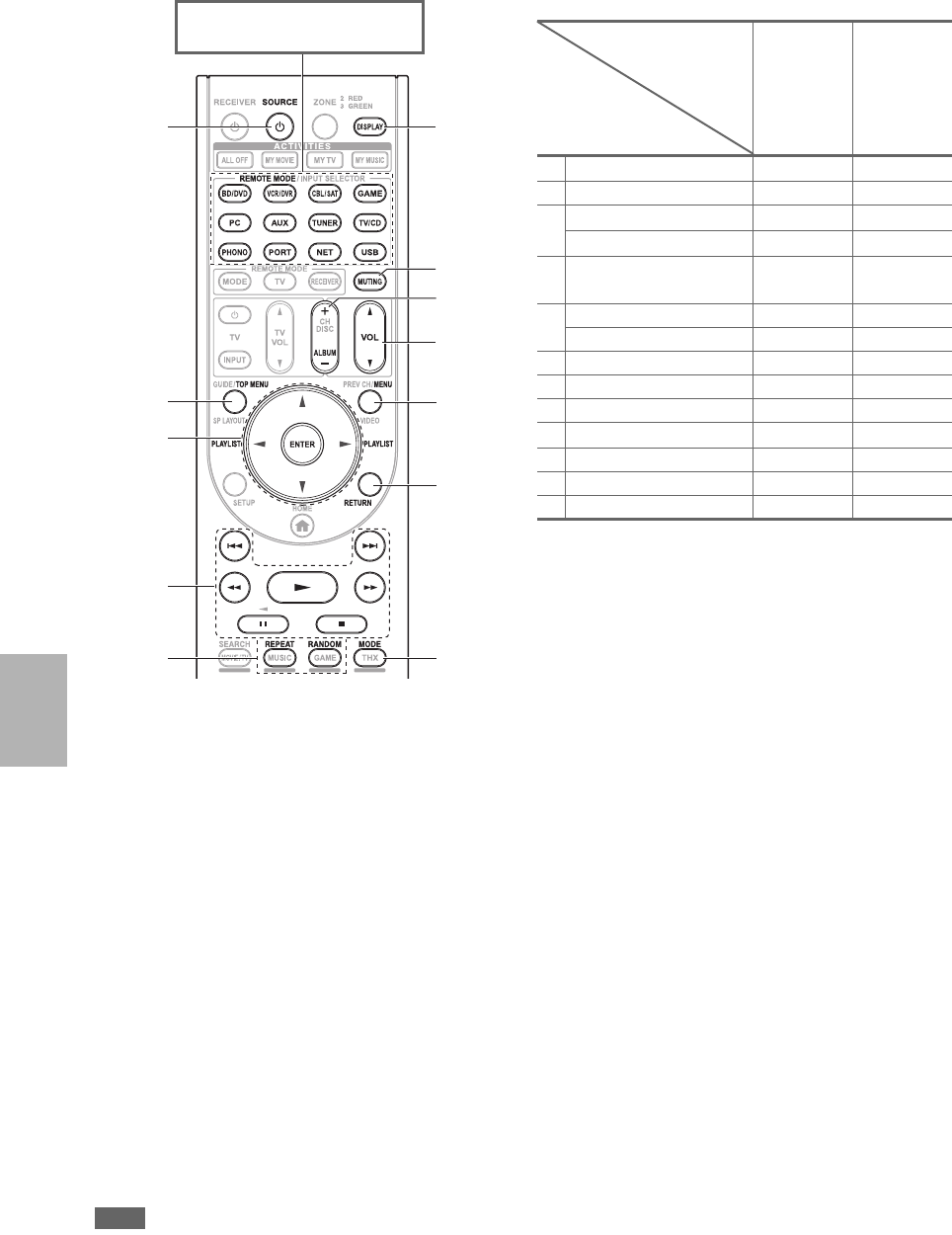 Composite BD/DVD, VCR/DVR, CBL/SAT, GAME,
