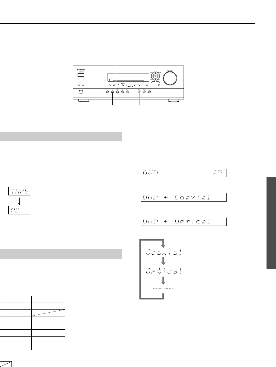 Analog Inputs: DVD (MULTICHANNEL), CD, TAPE,