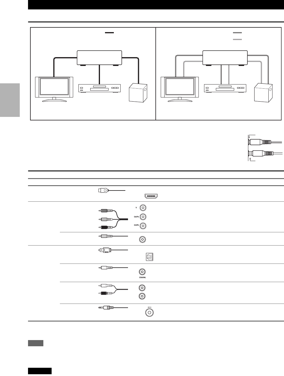 The following tables show how video signals at different resolutions are output by the AV receiver.