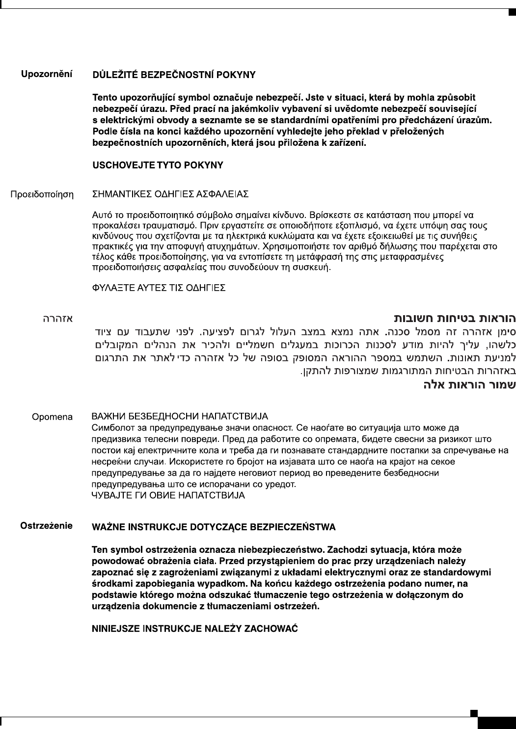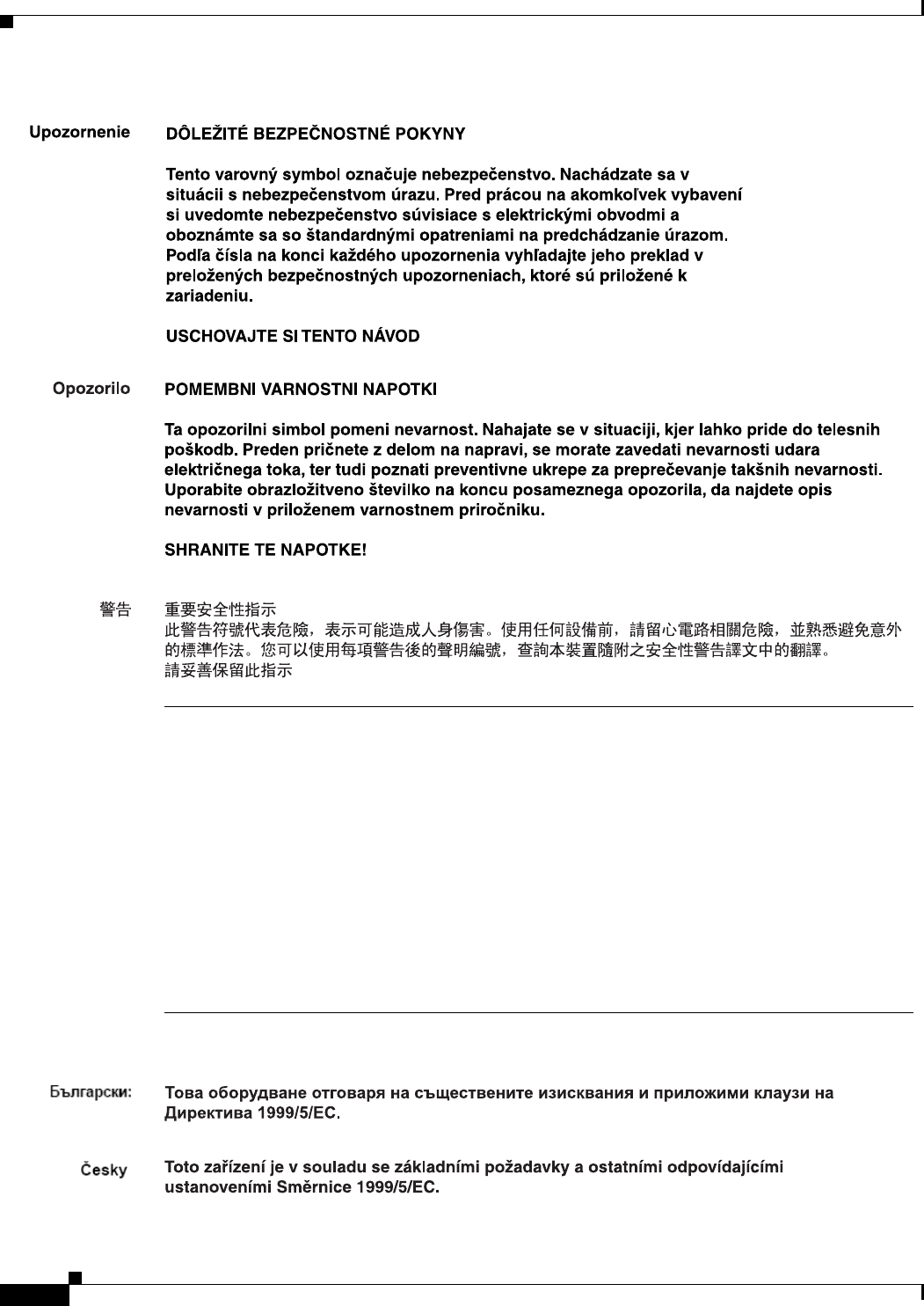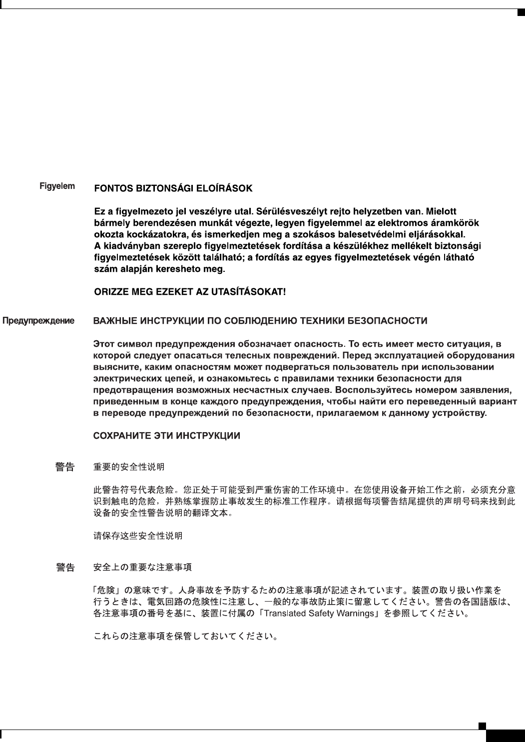 This section repeats in multiple languages the basic warnings appropriate for Cisco Cius.