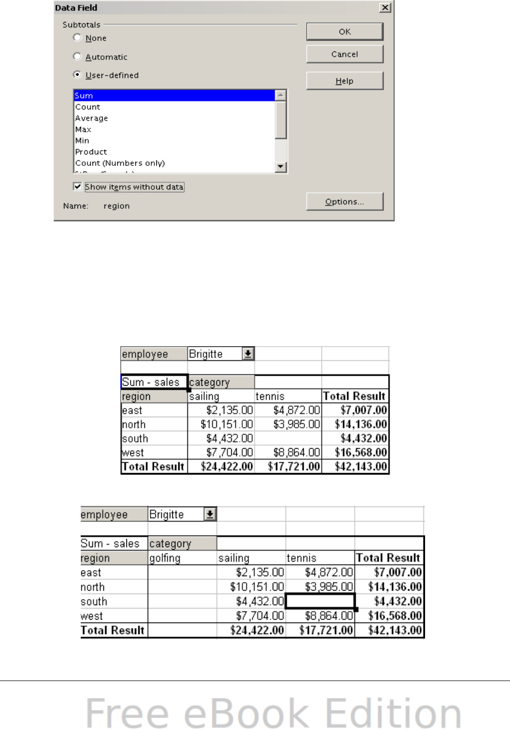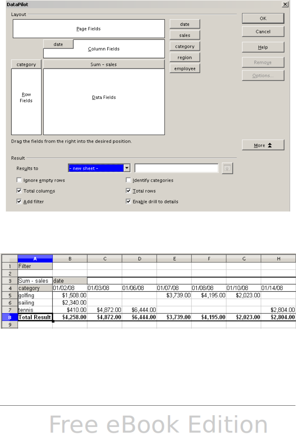 - The DataPilot dialog