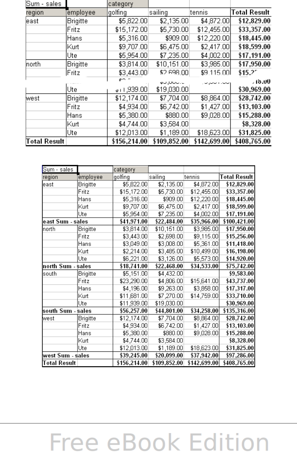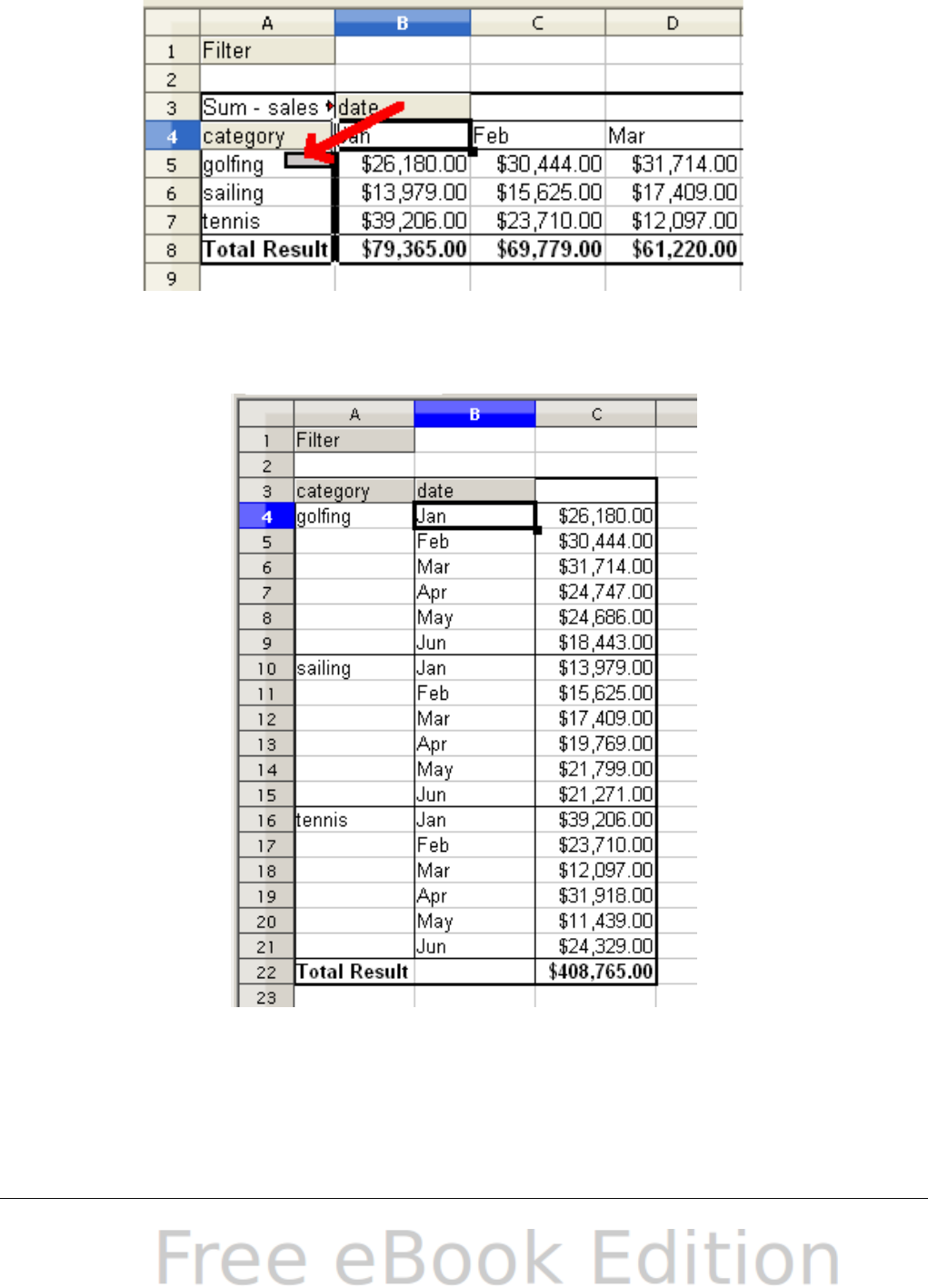 - Grouping rows or columns