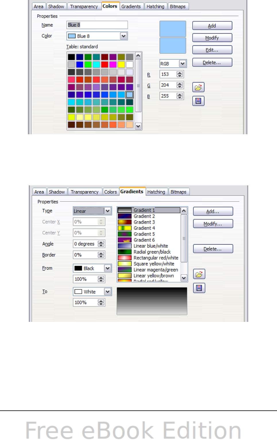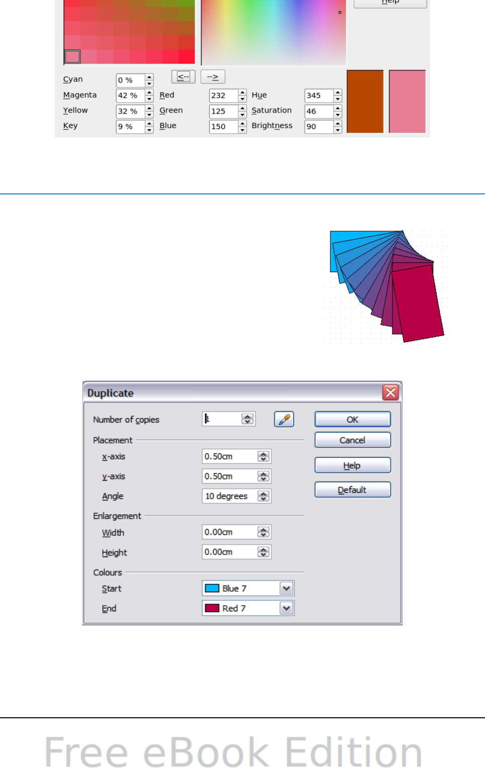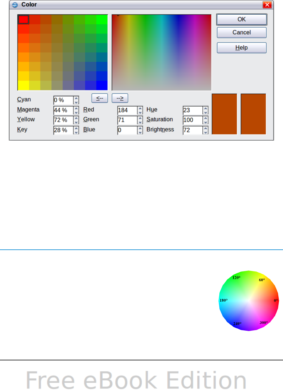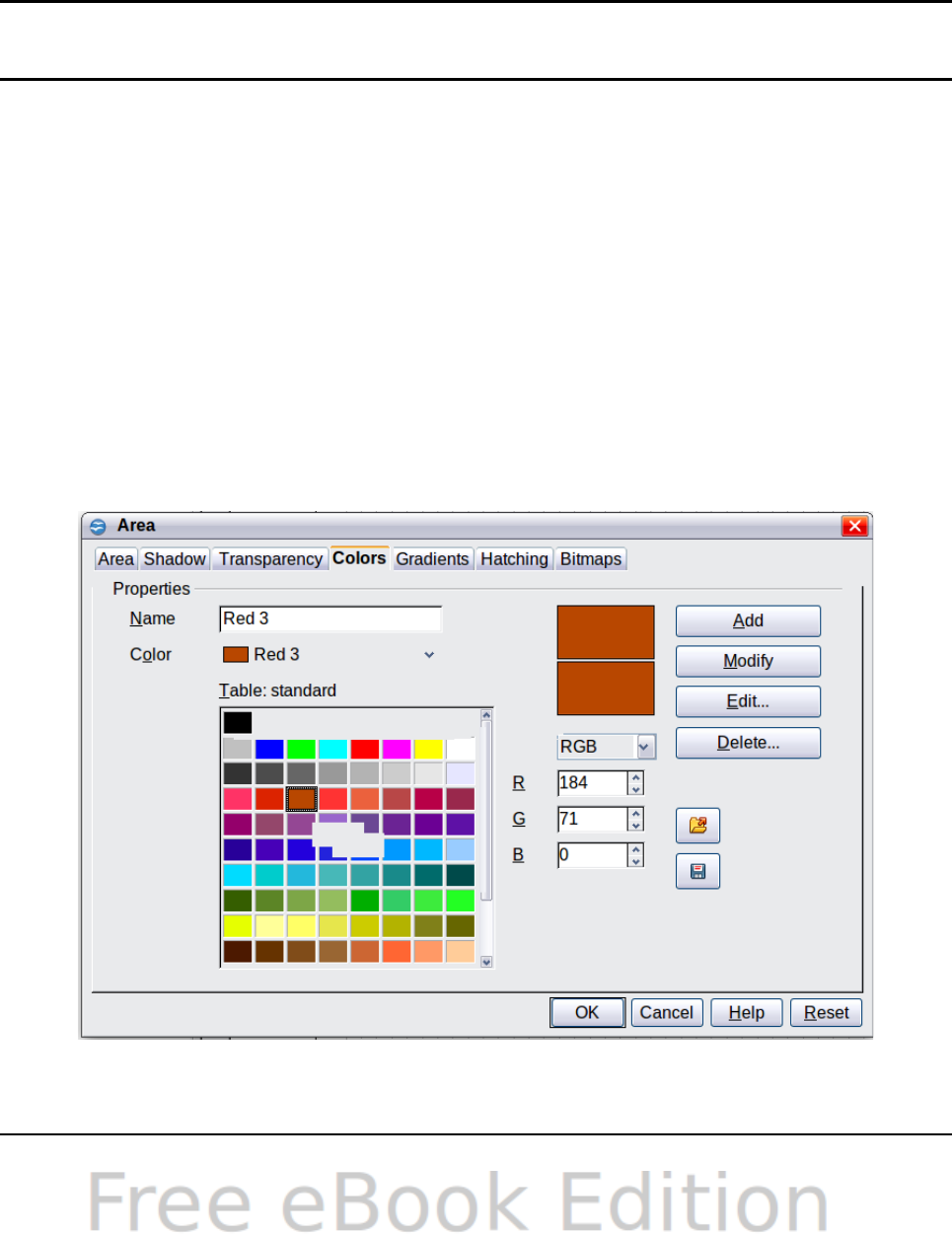 - Changing colors using the Color dialog