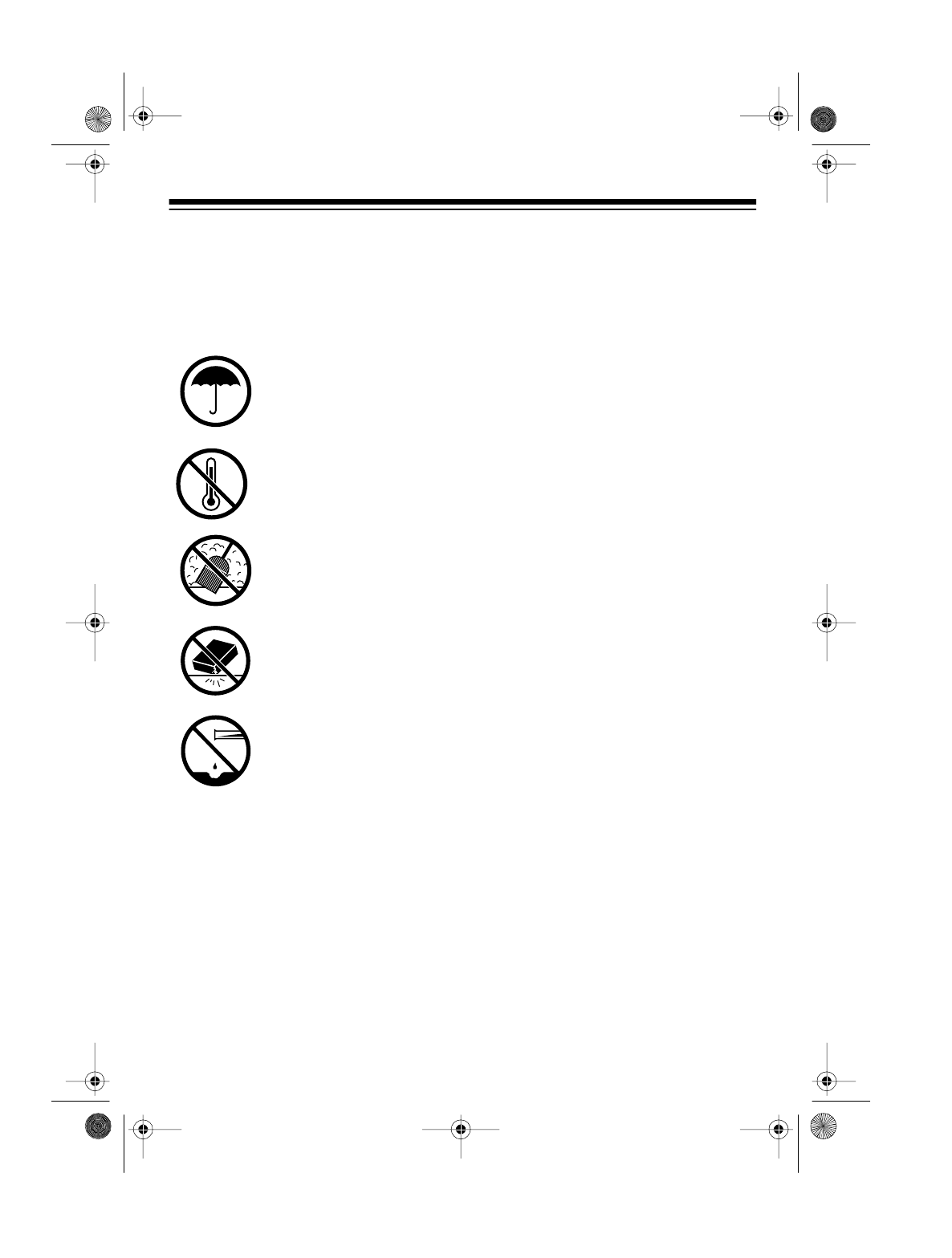 Keep the speaker dry. If it gets wet, wipe it dry immediately. Liquids