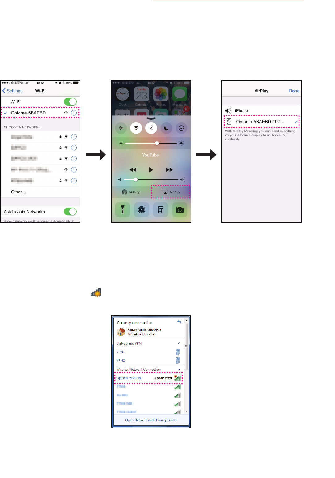2. Tap Optoma-XXXXXX from the list of available networks to connect to the WDC200.