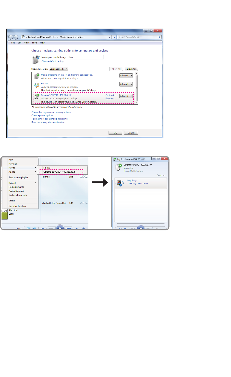 4. Click Stream > More streaming options > set the Optoma-XXXXXX setting to Allowed.