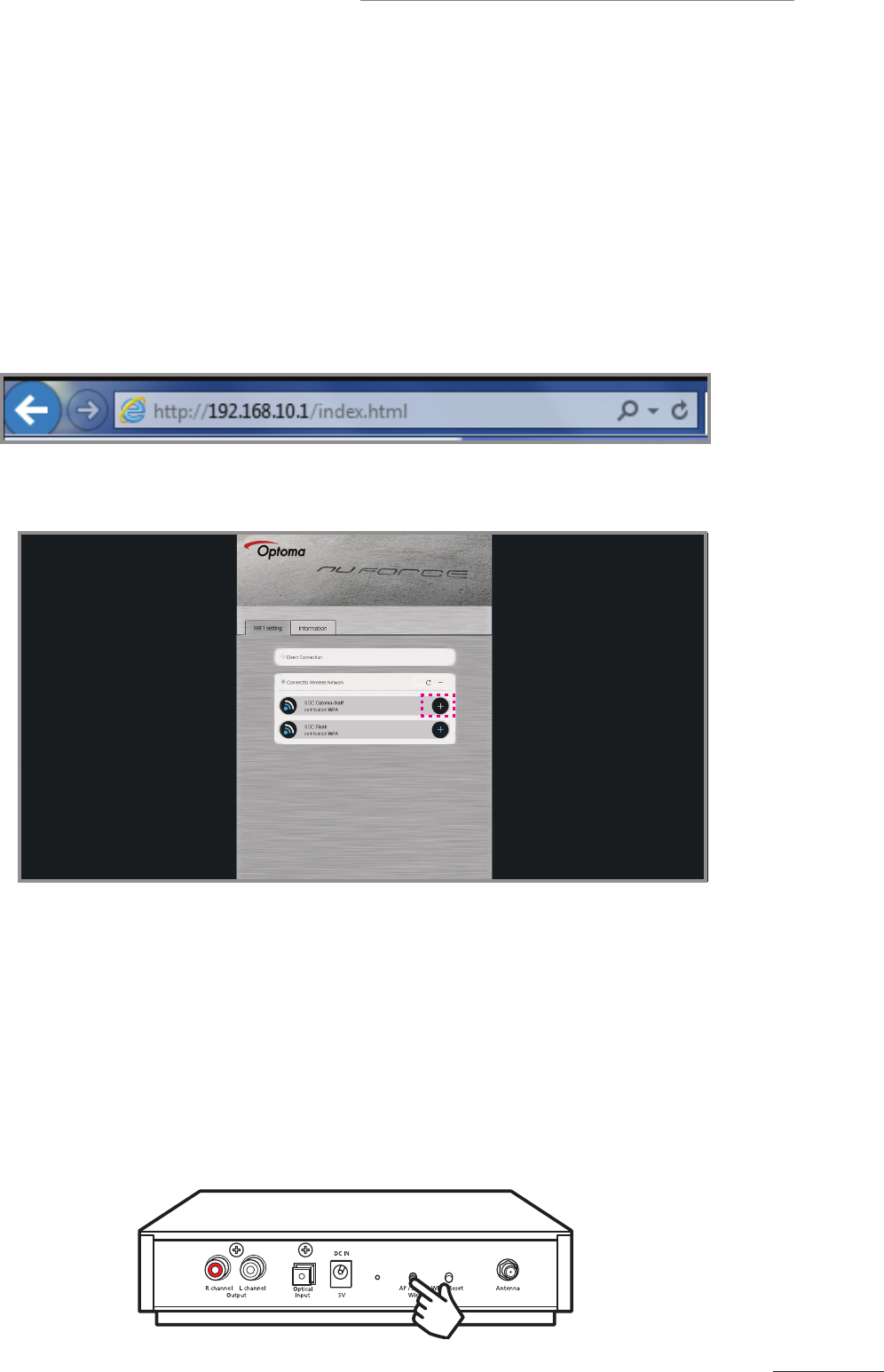 To connect your DAC with your home’s AP (access point) using the WPS function, perform the following: