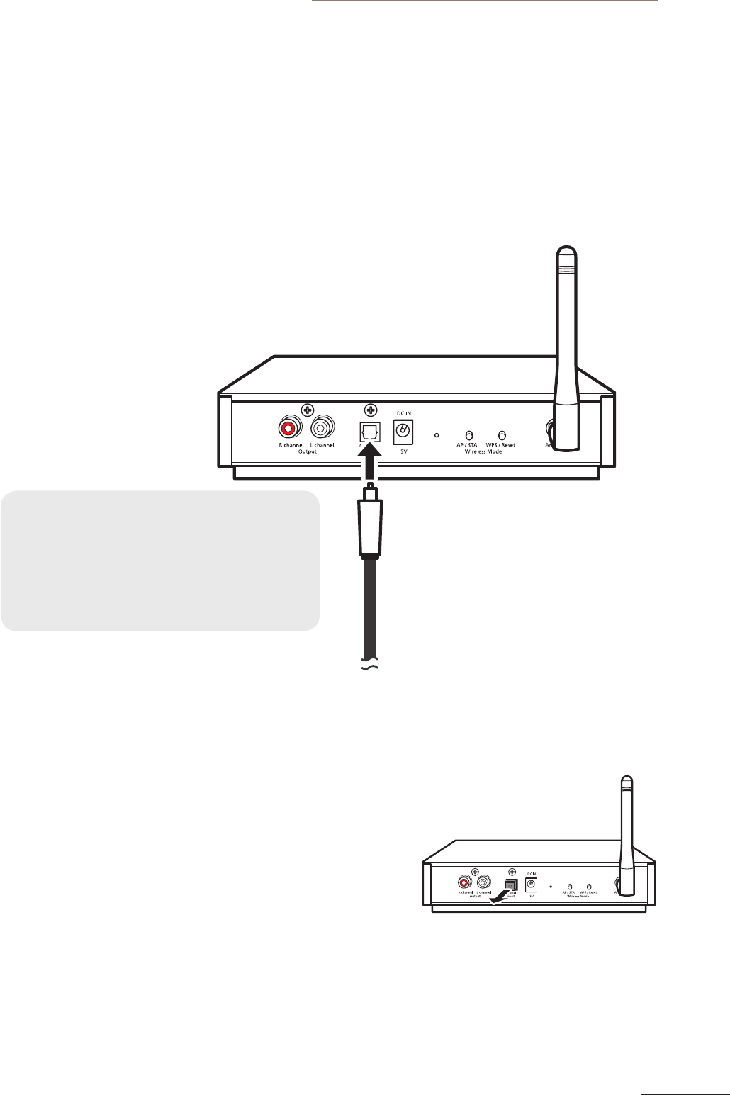 1. Connect the digital source to the optical input connector of the device by using a S/PDIF cable as shown in the