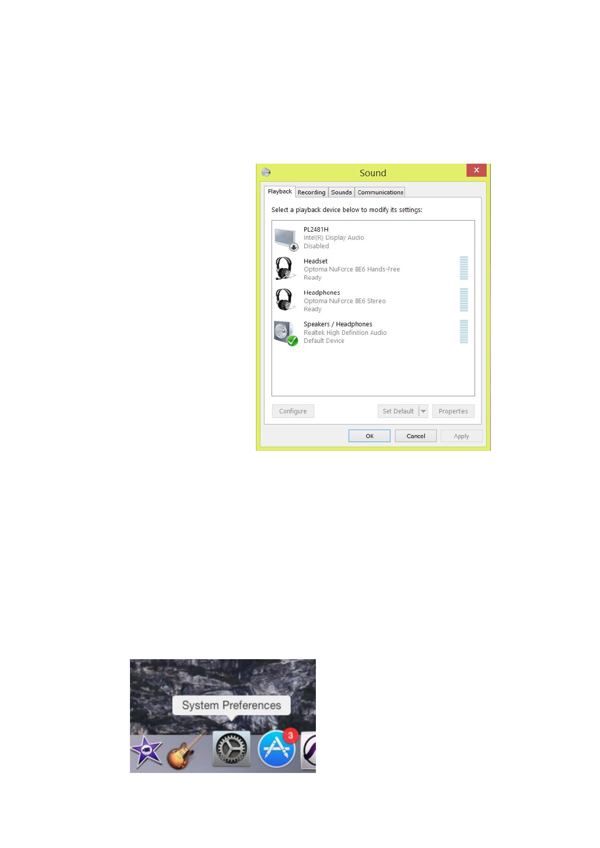 9. Click on HEADPHONES to set the “Headphones BE2” as default