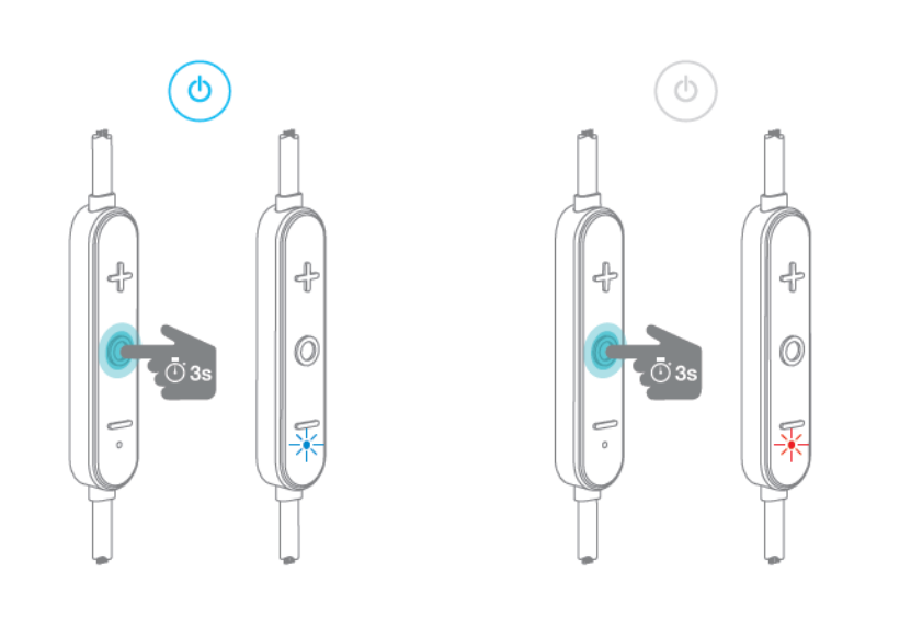 1. Press and hold the BE Sport3’s Power/Function button for 6