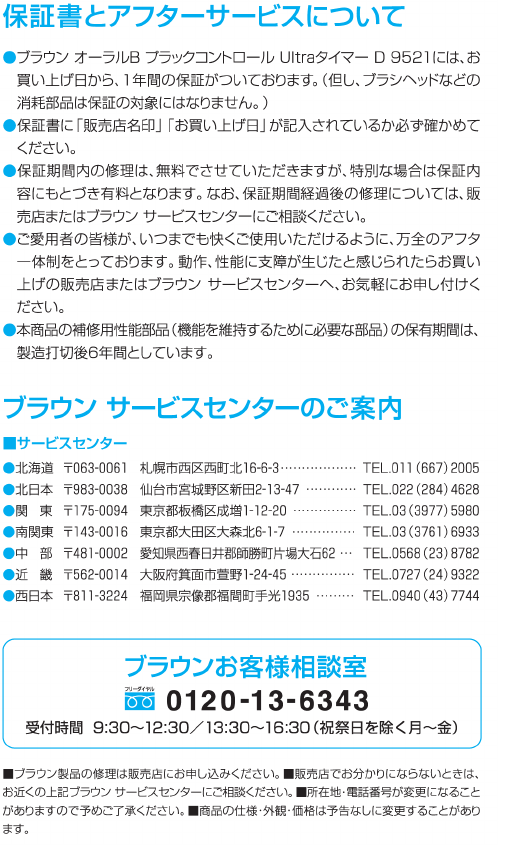 Oral B Tourguide 2020 Users Manual 4716234_D9511_Japan