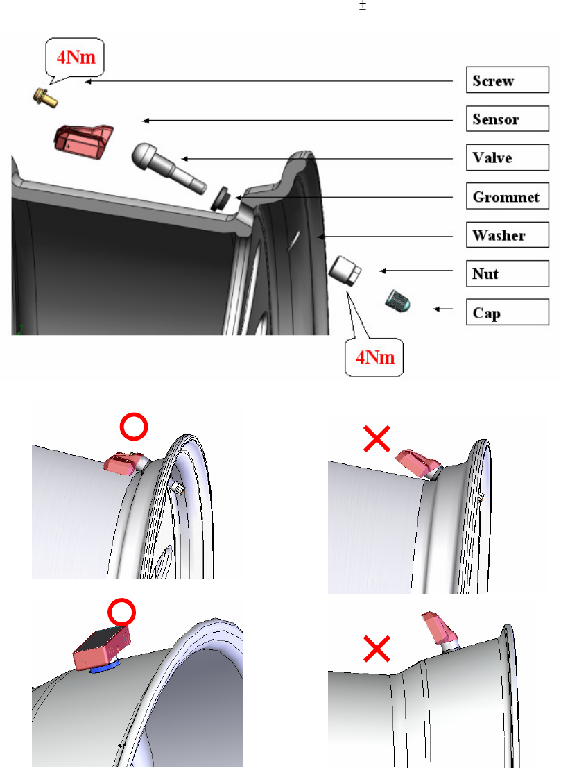 3. Push valve stem through the rim, install washer, tighten nut to 4 0.5Nm then tighten cap.