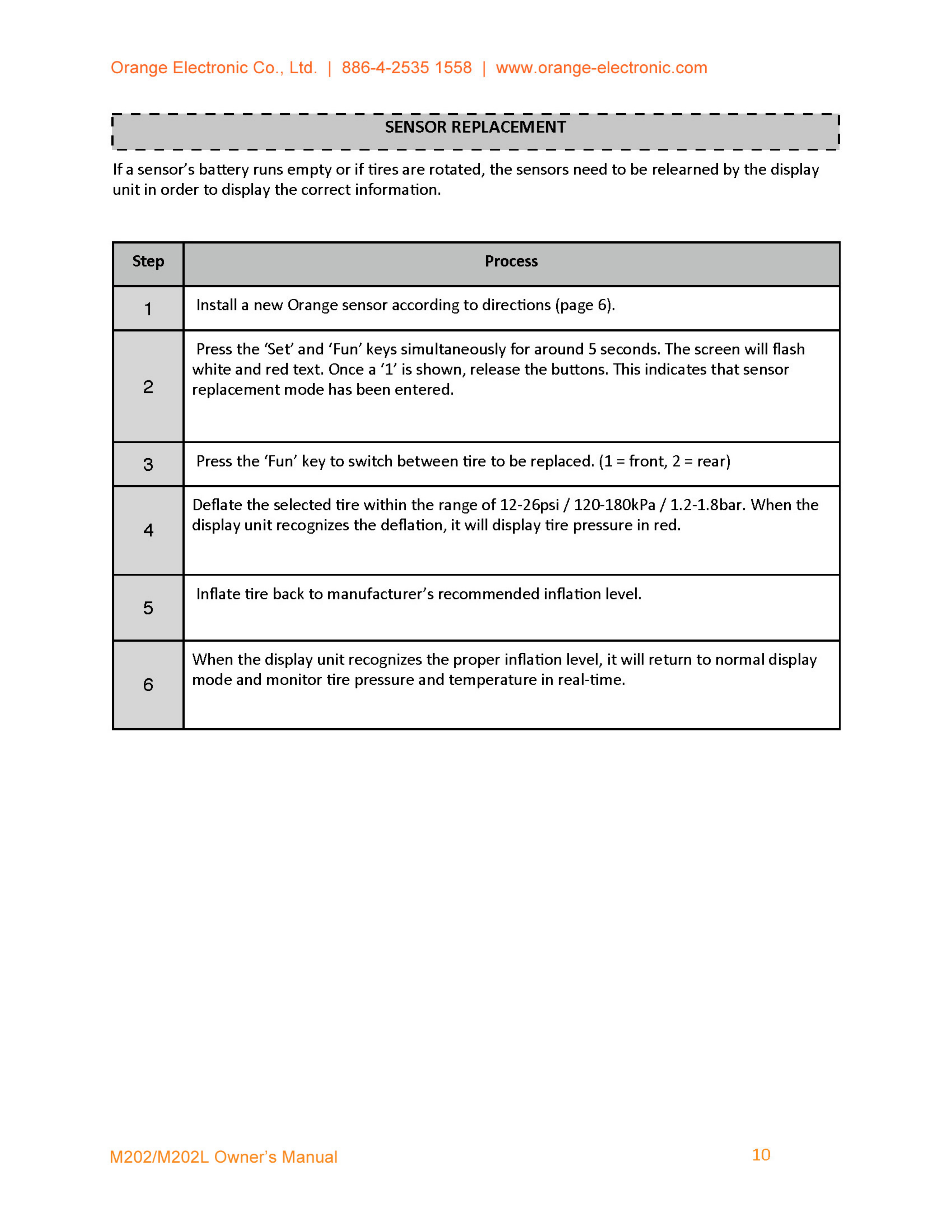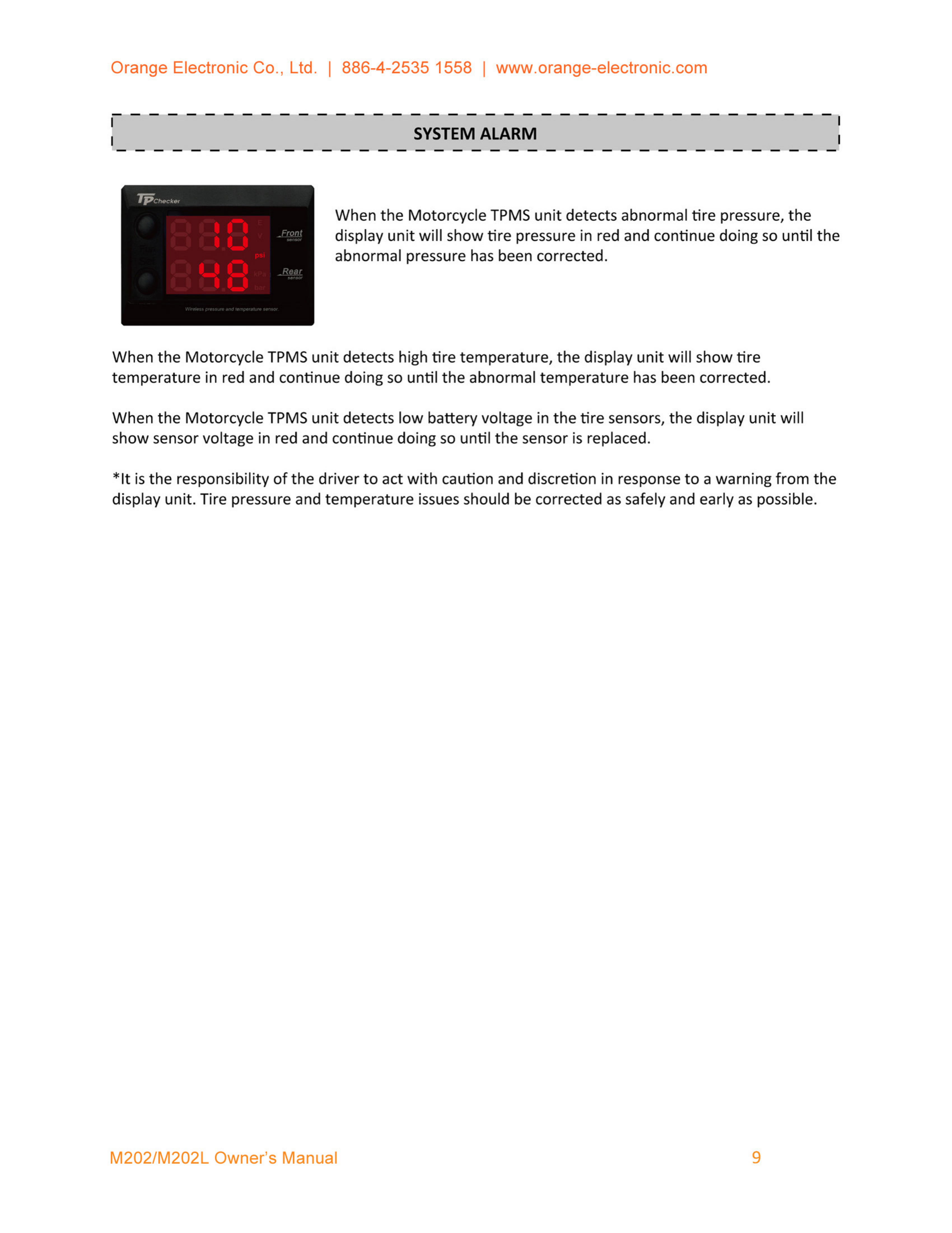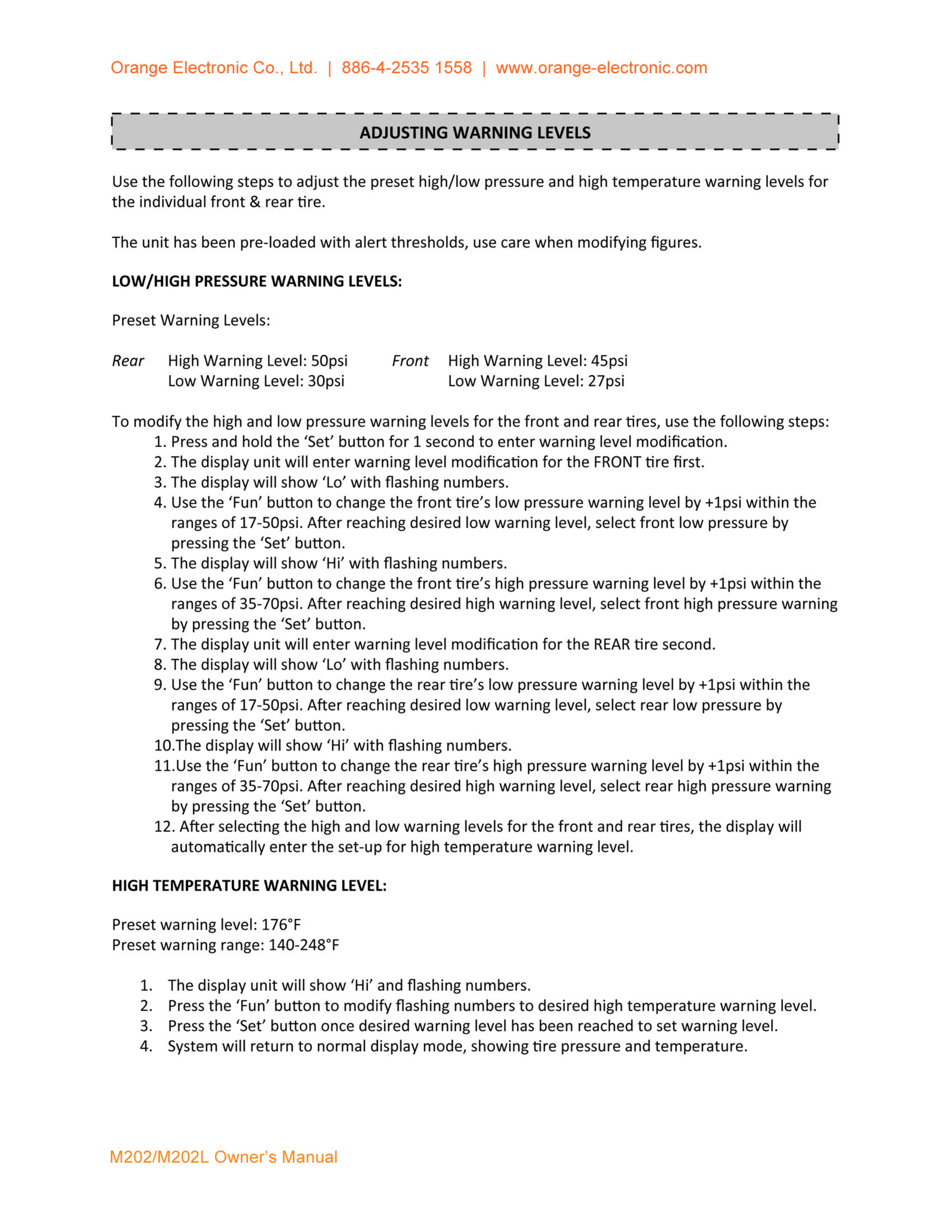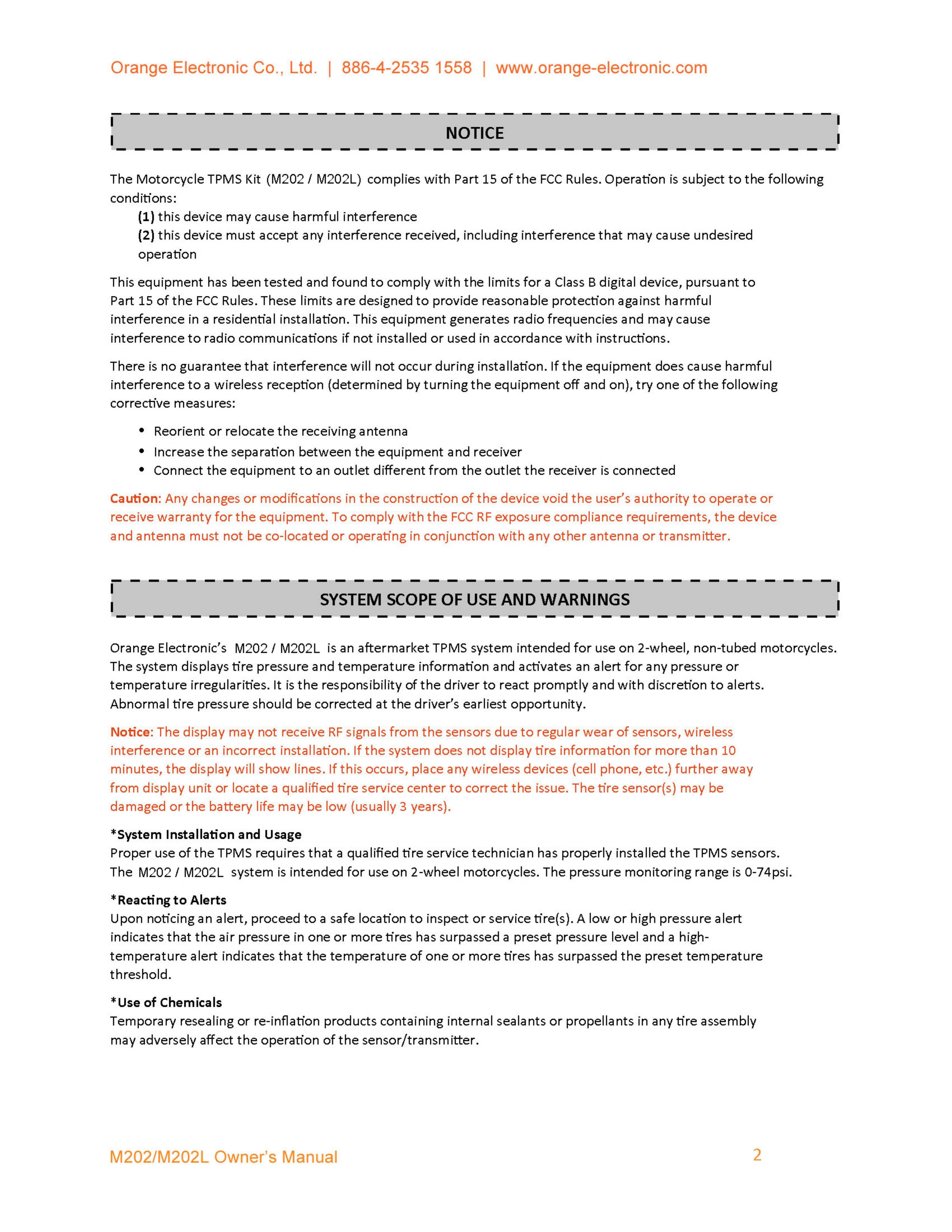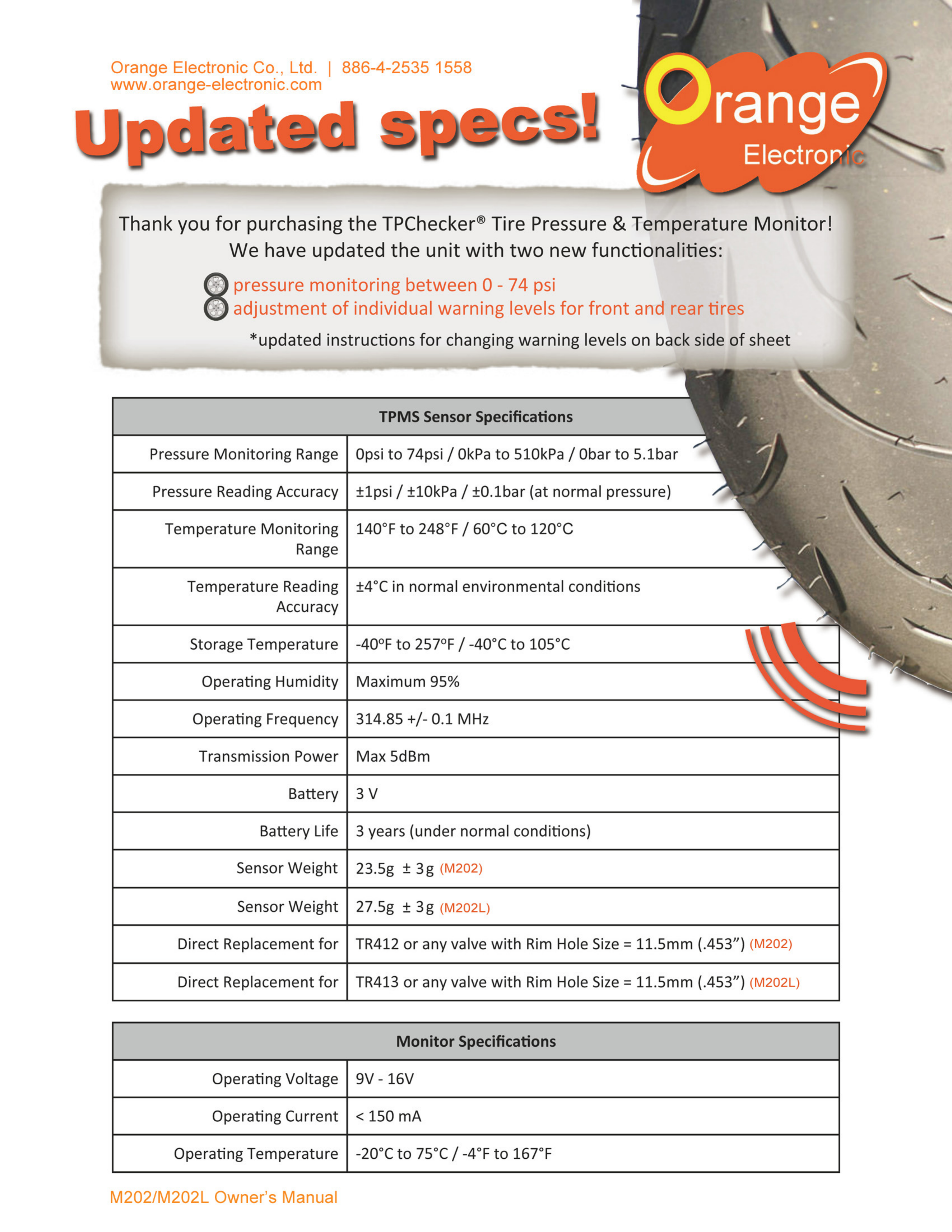 Orange Electronic M202 Tire Pressure Monitoring System User Manual