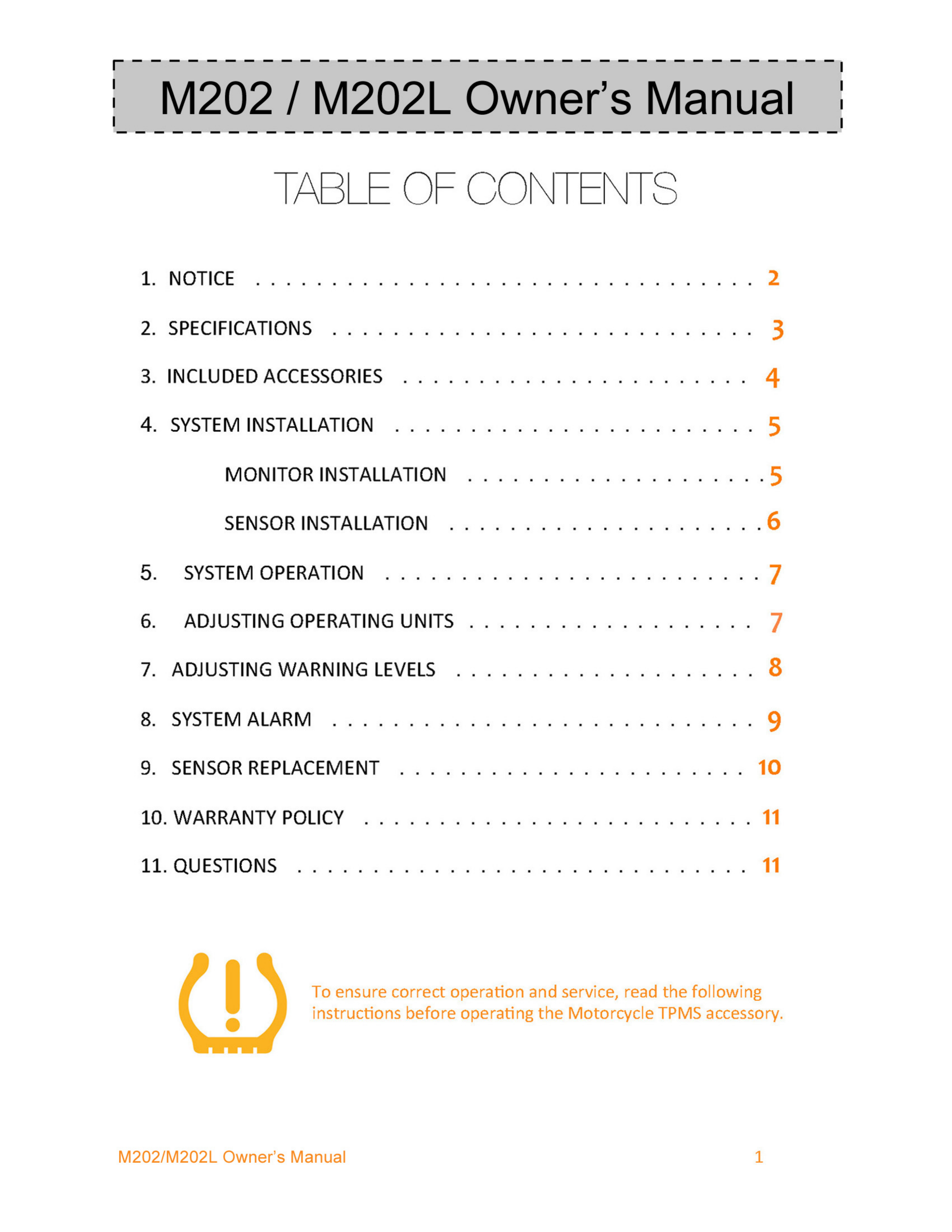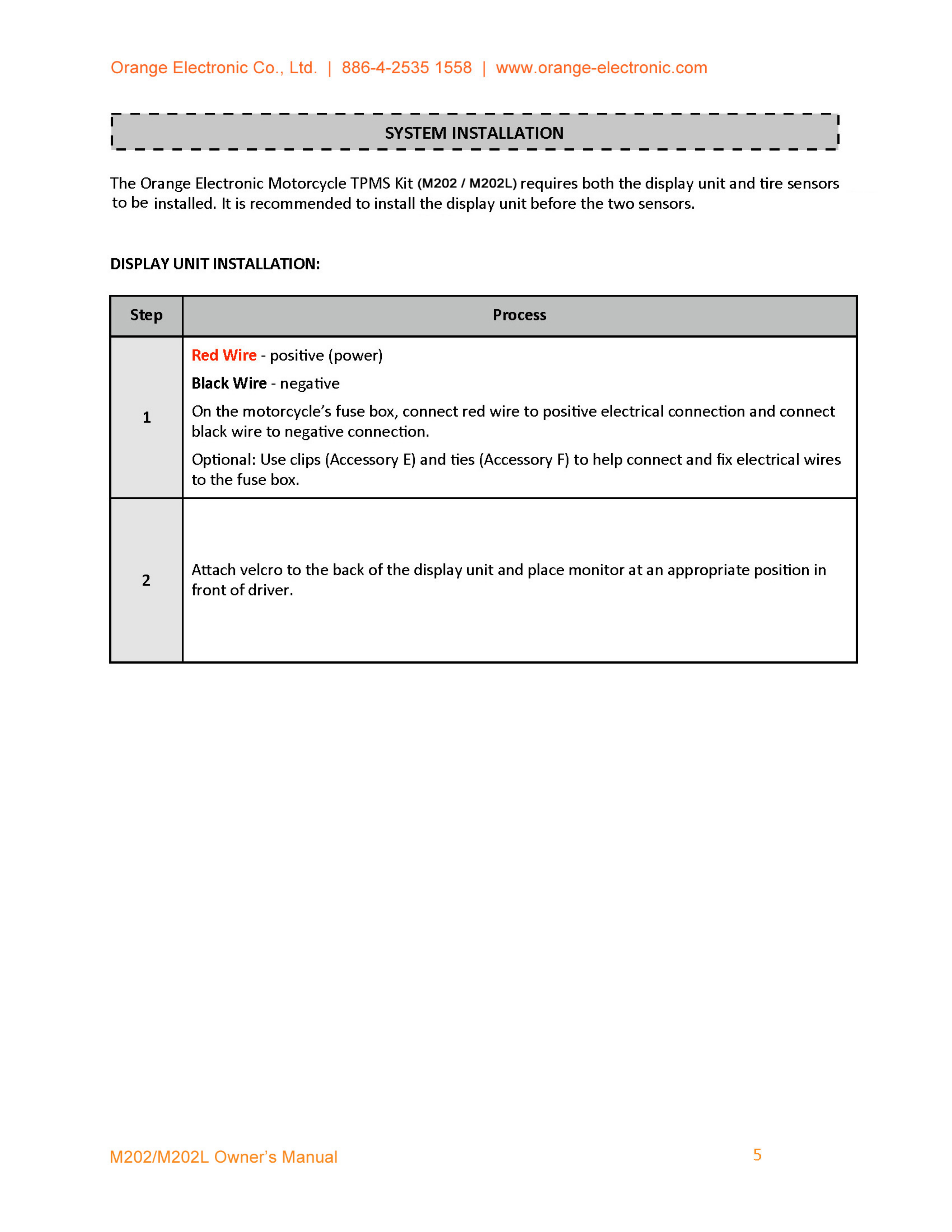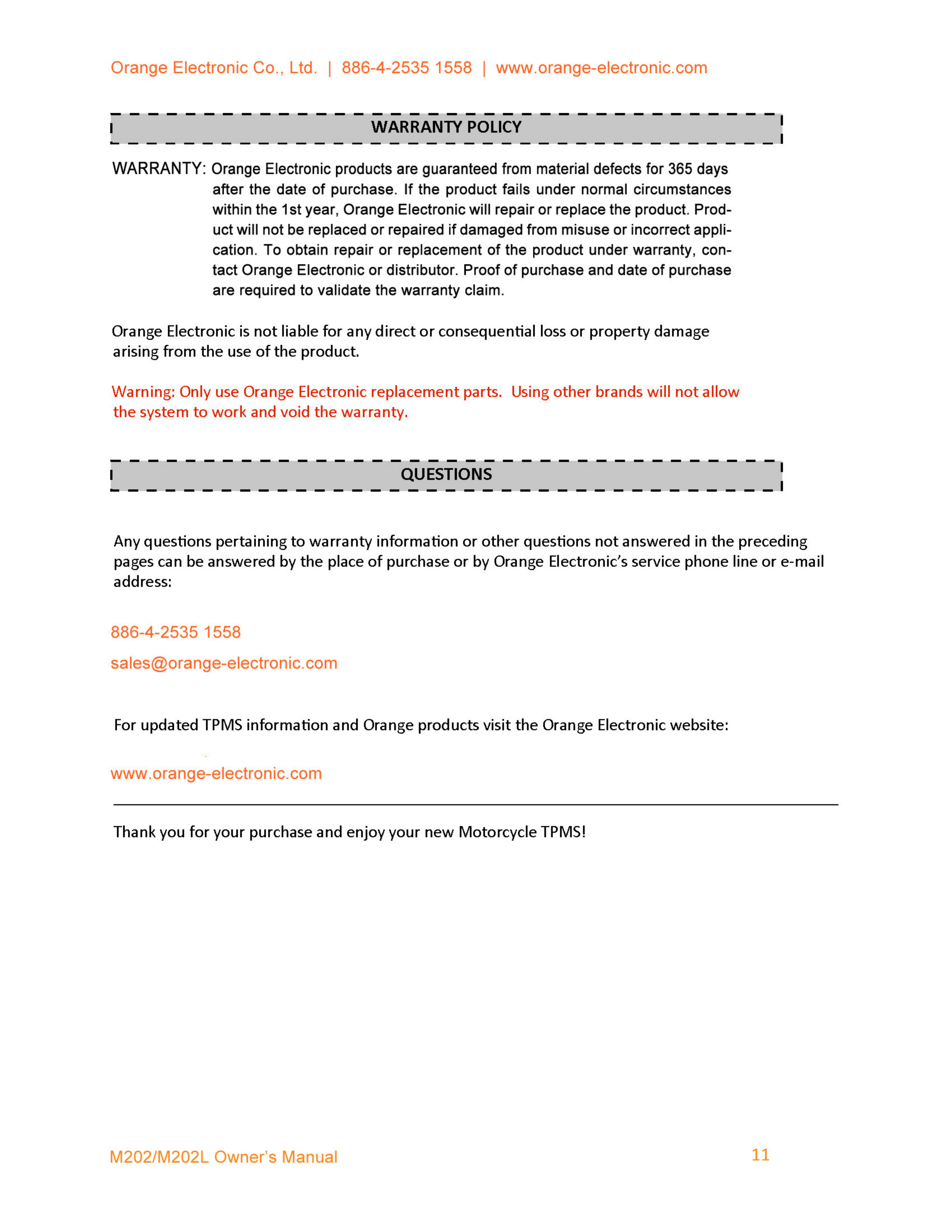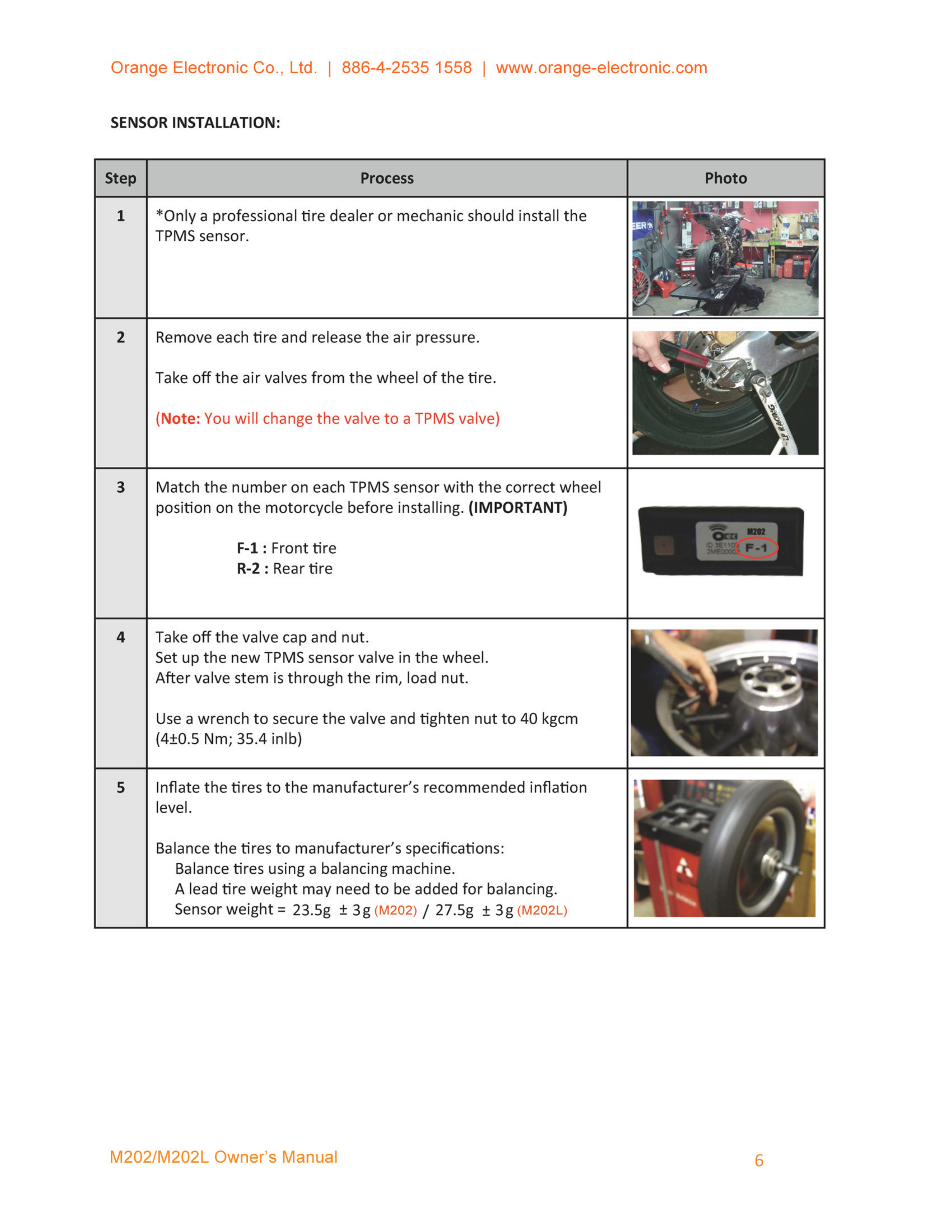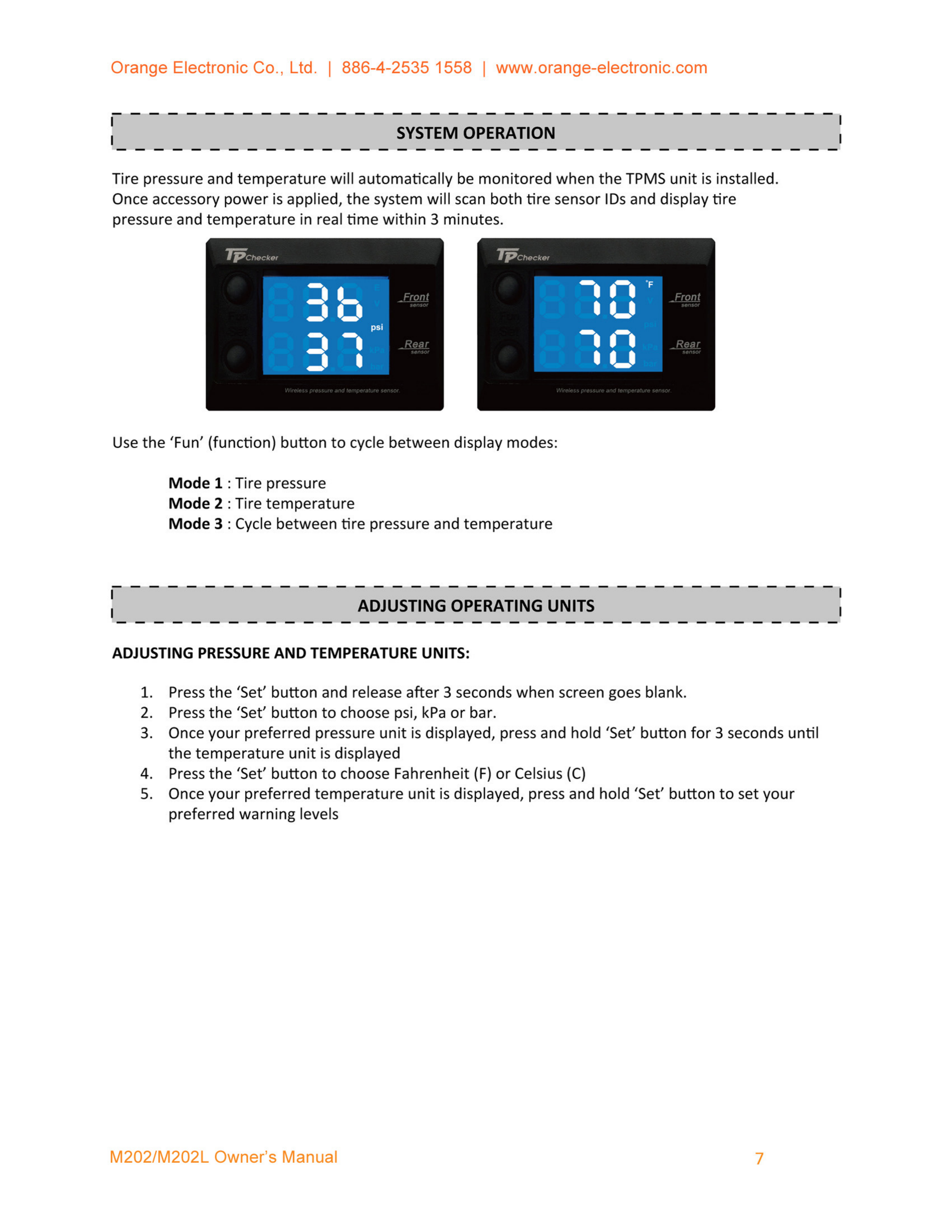 Orange Electronic M202 Tire Pressure Monitoring System User Manual